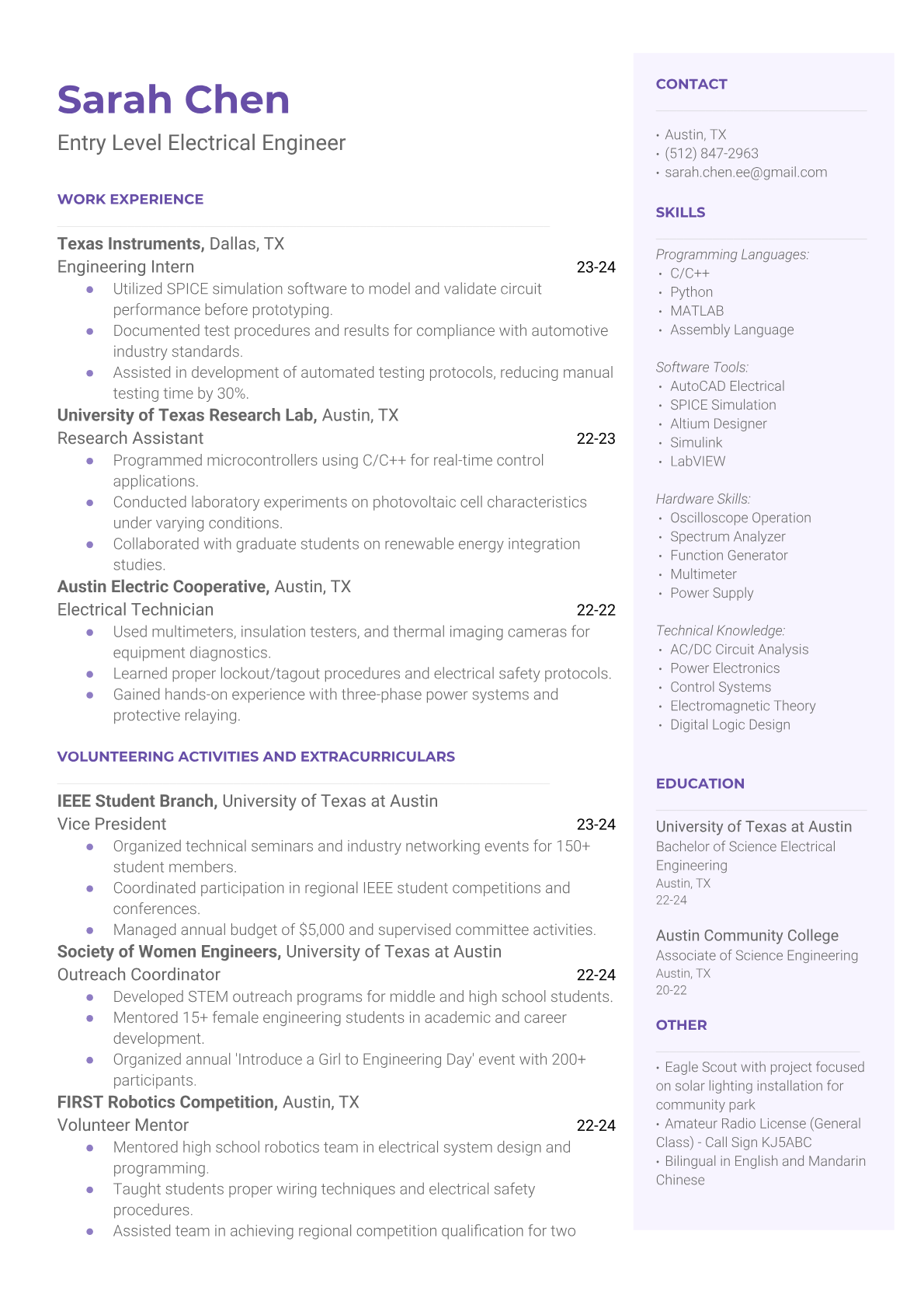 Entry Level Electrical Engineer Resume Templates - ATS Optimized