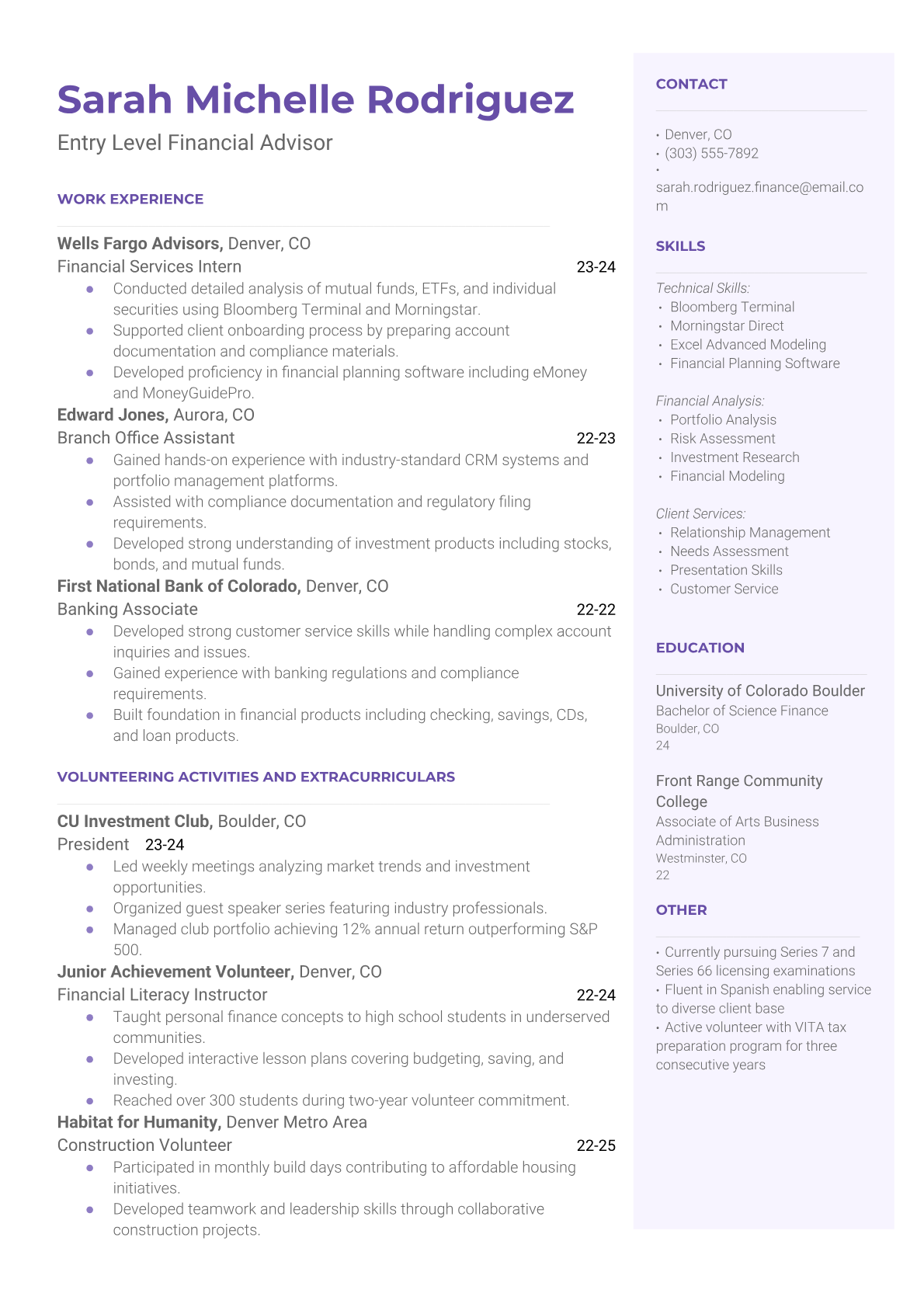 Entry Level Financial Advisor Resume Templates - ATS Optimized