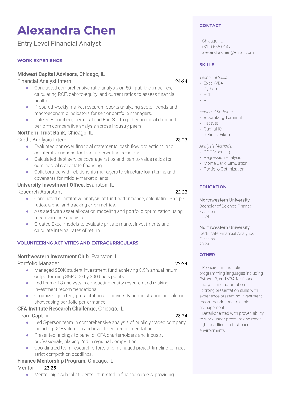 Entry Level Financial Analyst Resume Templates - ATS Optimized