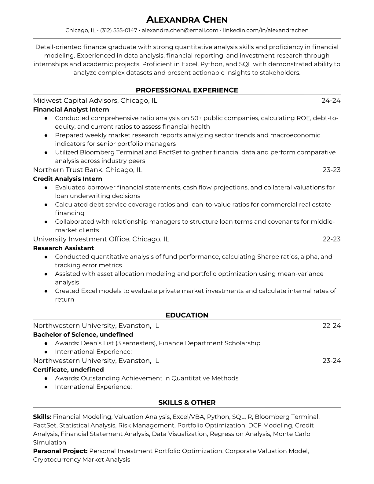 Professional resume templates for Entry Level Financial Analyst positions. Choose from quantitative specialist, academic, or ATS-optimized formats. Includes finance keywords and formatting for financial services recruiting systems.