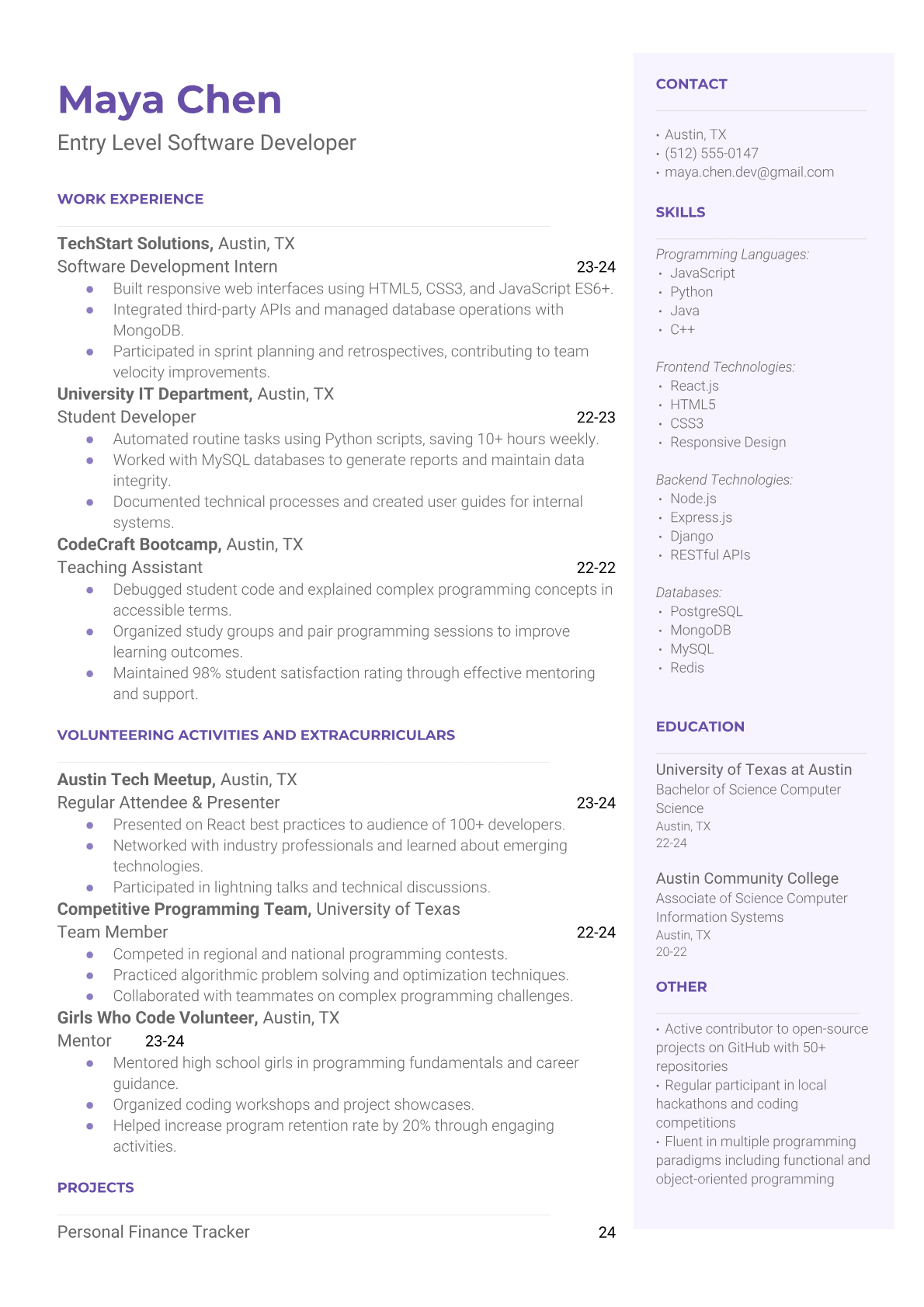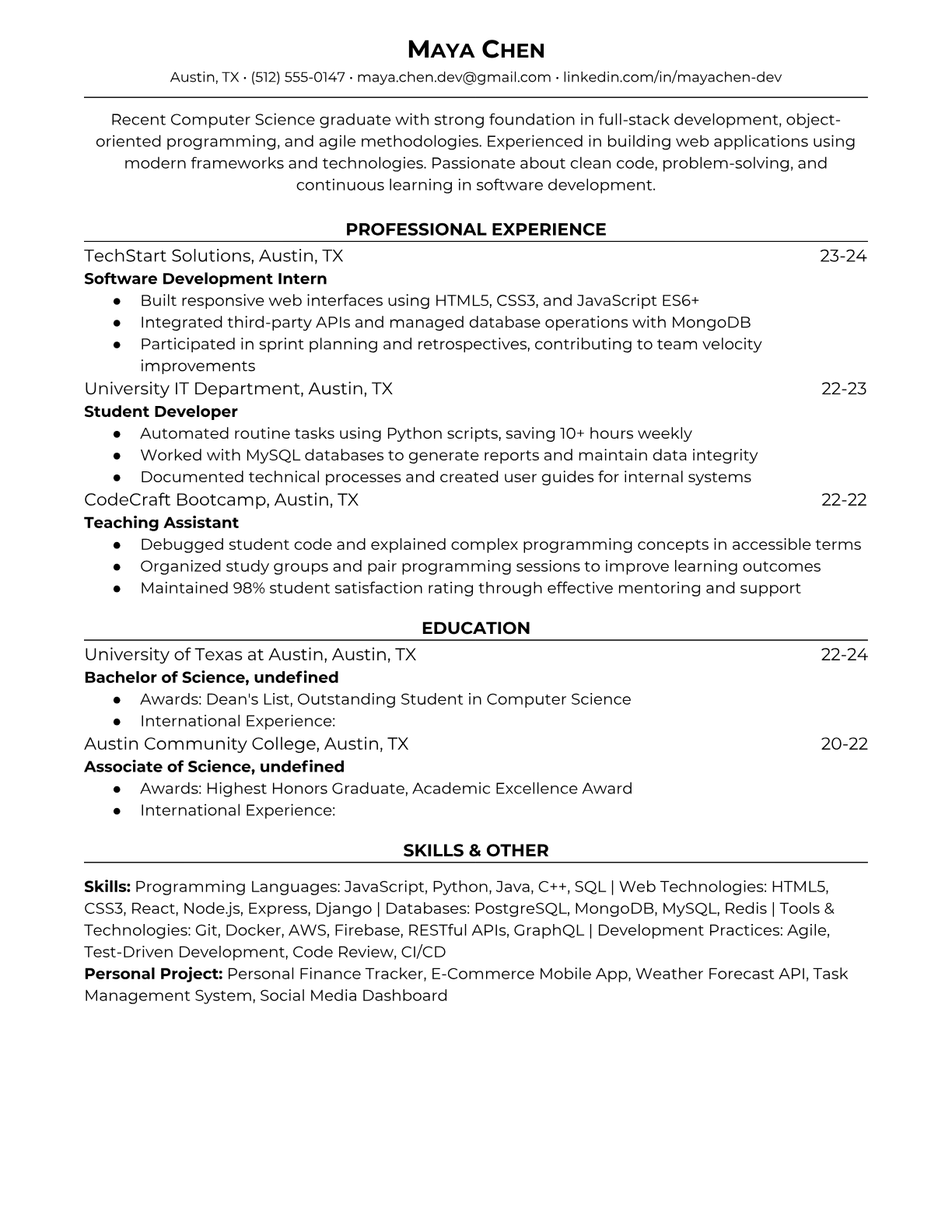 Entry Level Software Developer Resume Templates - ATS Optimized