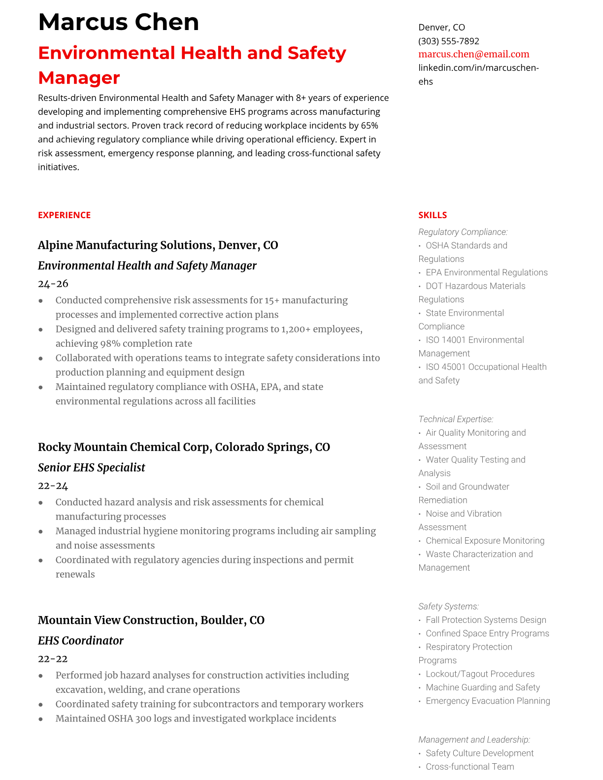 Environmental Health and Safety Manager Resume Templates - ATS Optimized