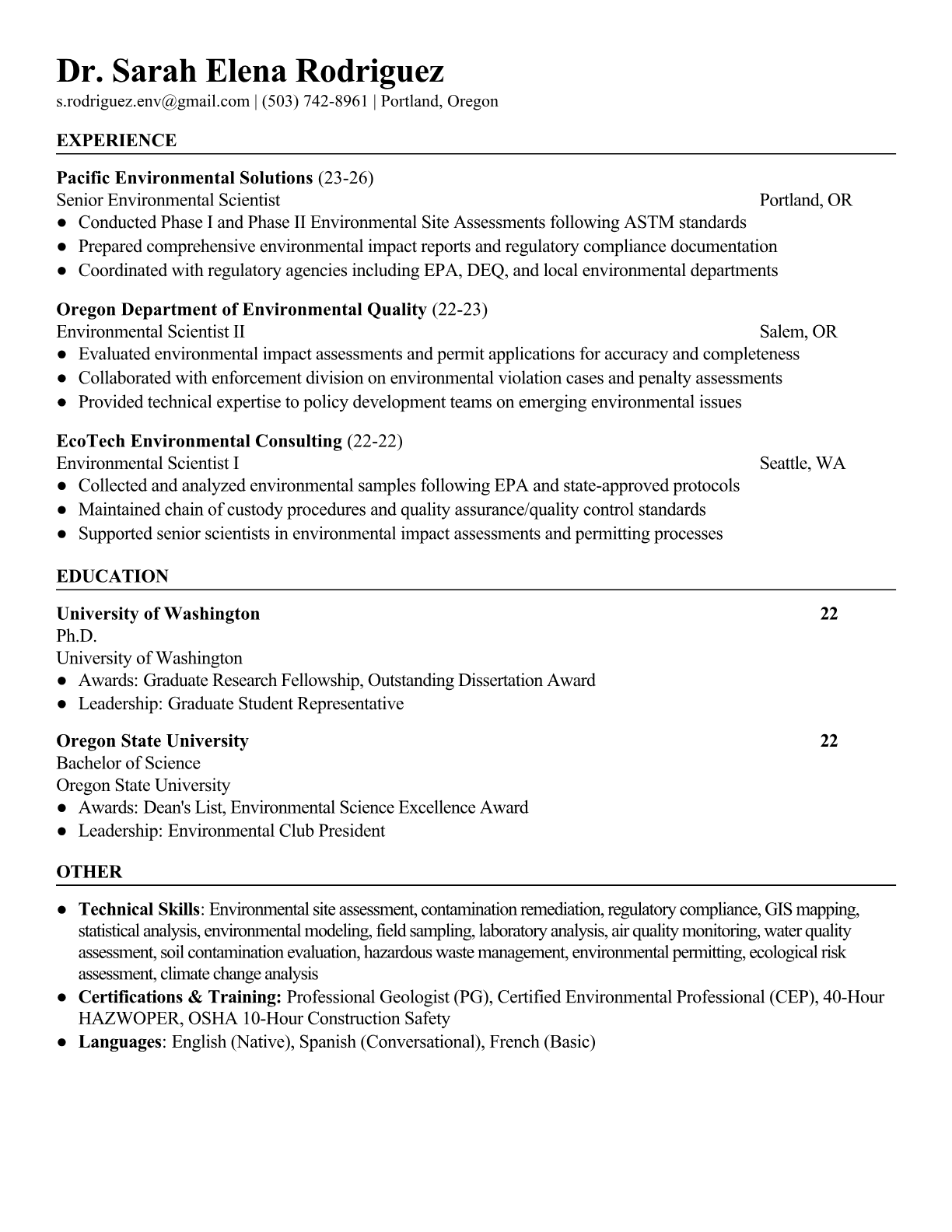 Environmental Scientist Resume Templates - ATS-Optimized