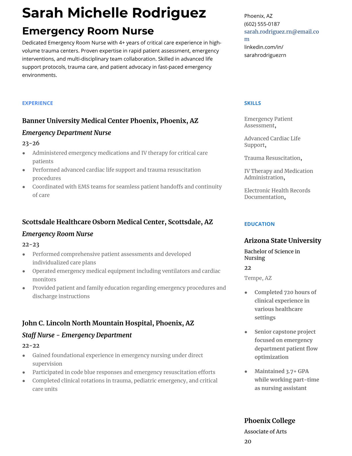 Professional ER Nurse resume templates optimized for hospital ATS systems. Highlight emergency nursing skills, certifications, and trauma care experience with our specialized templates.