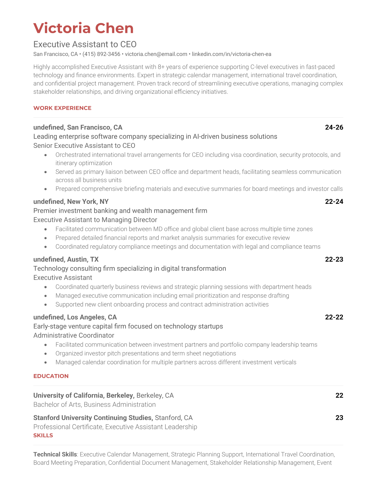 Executive Assistant to CEO Resume Templates , ATS-Optimized