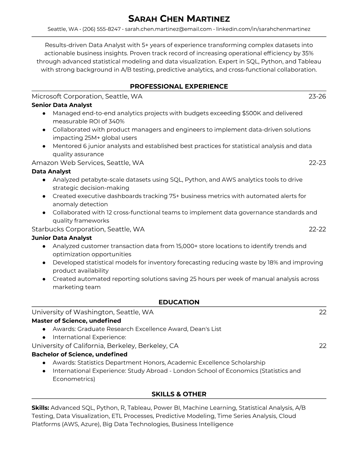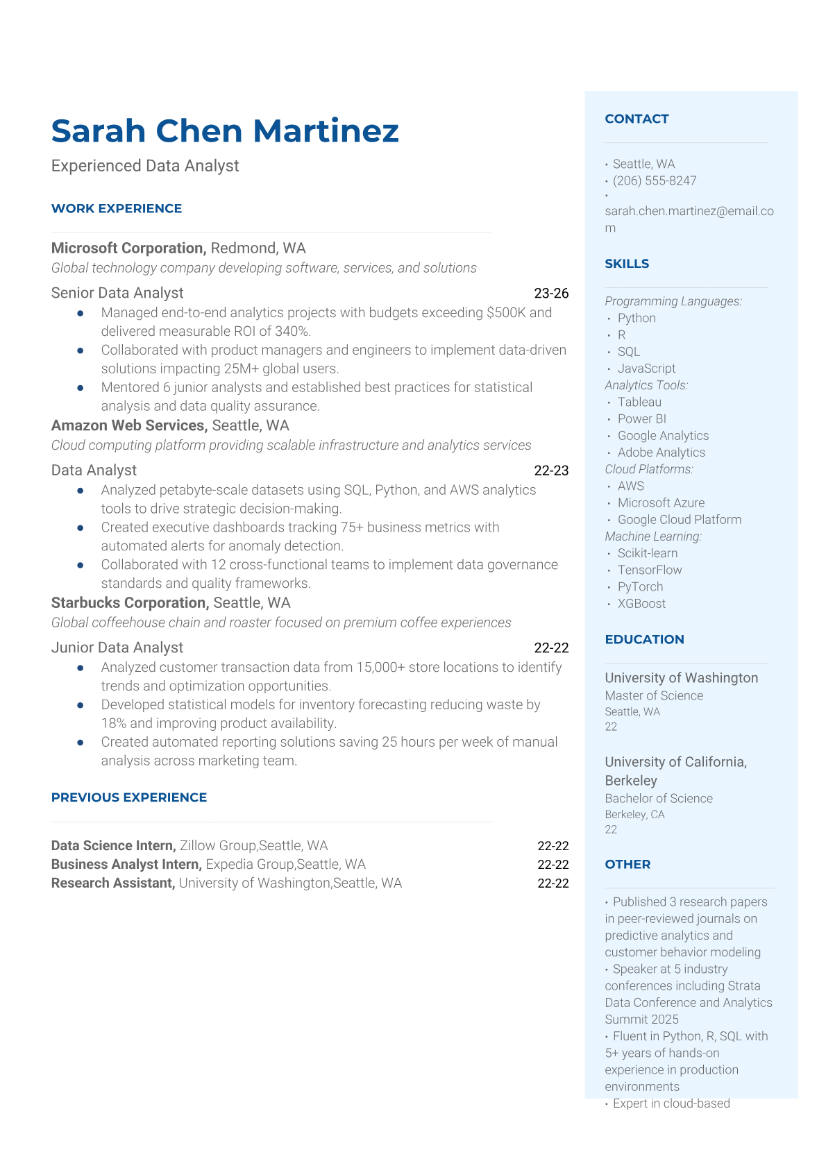 Experienced Data Analyst Resume Templates | ATS-Optimized