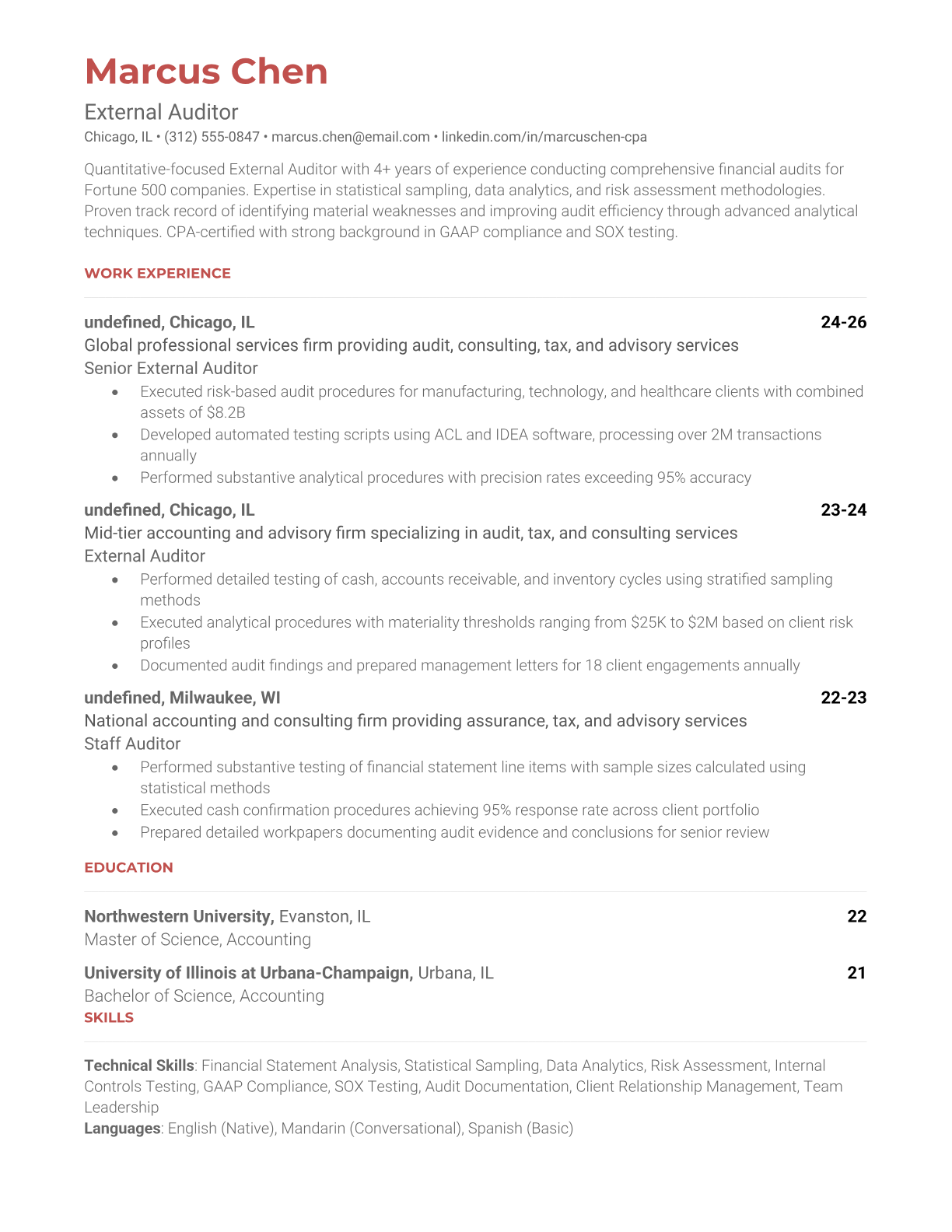 External Auditor Resume Templates - ATS-Optimized for Accounting Firms