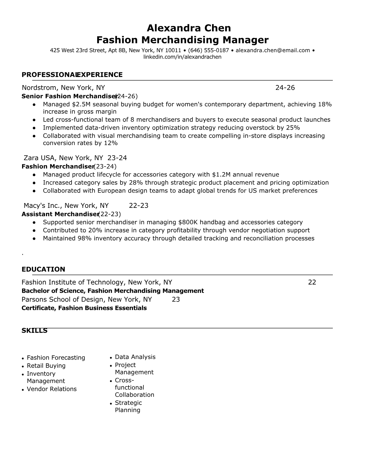 Professional fashion merchandising resume templates designed for retail buyers, planners, and merchandising professionals. ATS-friendly formats with industry keywords to help you land interviews at top fashion retailers and brands.