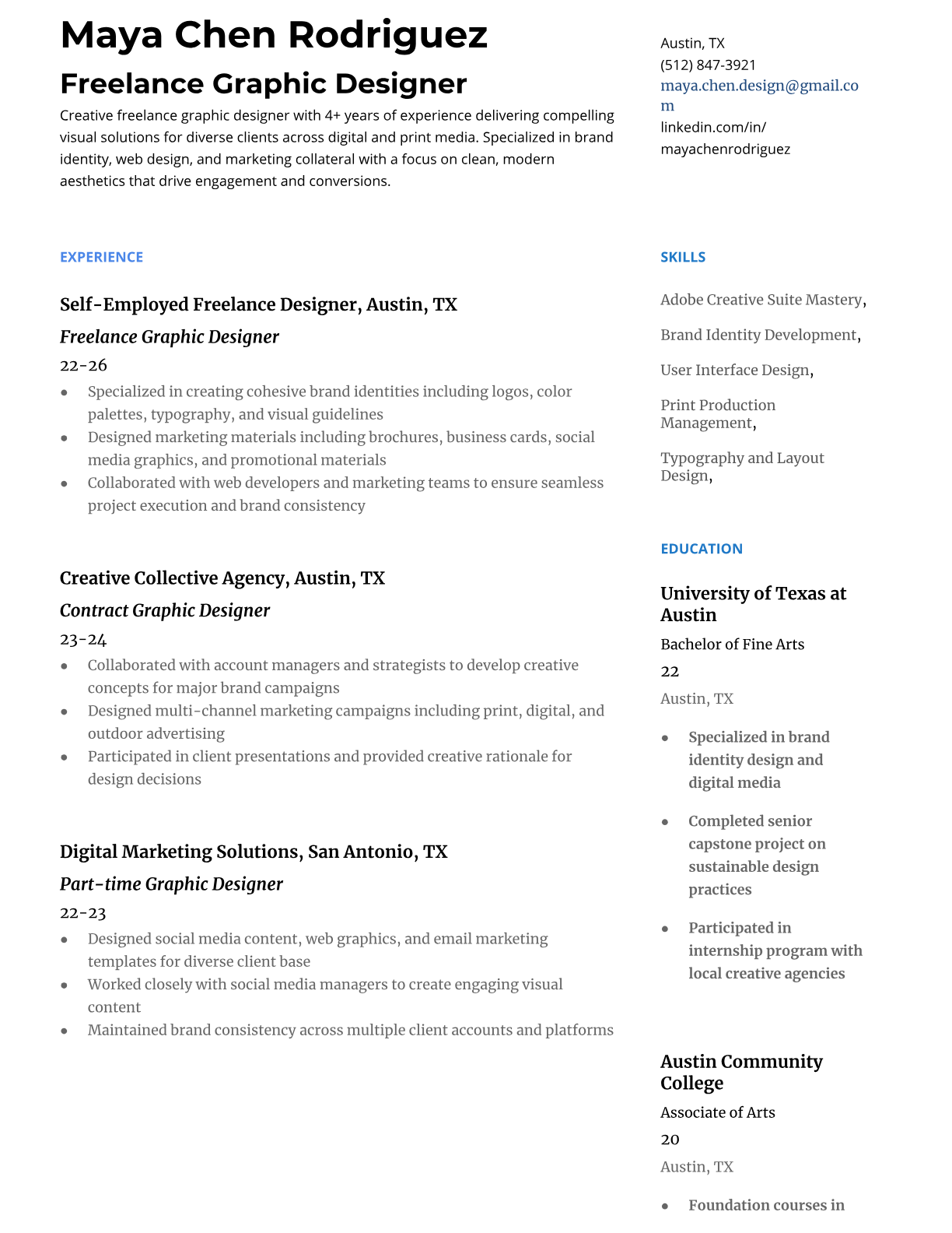 Freelance Graphic Designer Resume Templates - ATS-Optimized