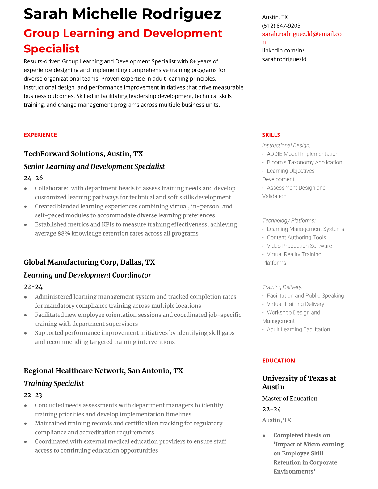 Group Learning and Development Specialist Resume Templates | ATS-Optimized