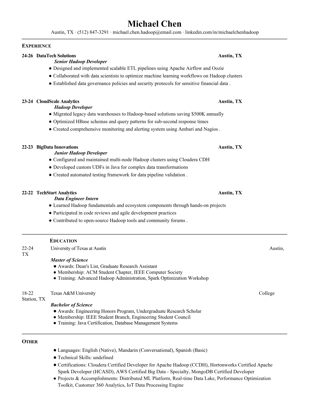Hadoop Developer Resume Templates - ATS-Optimized for Big Data Roles