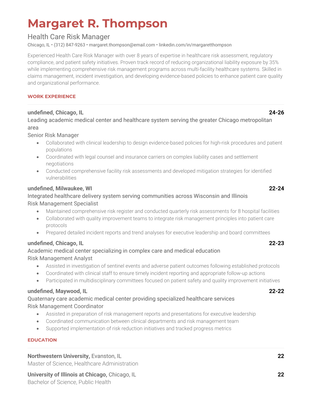 Healthcare Risk Manager Resume Templates - ATS-Optimized