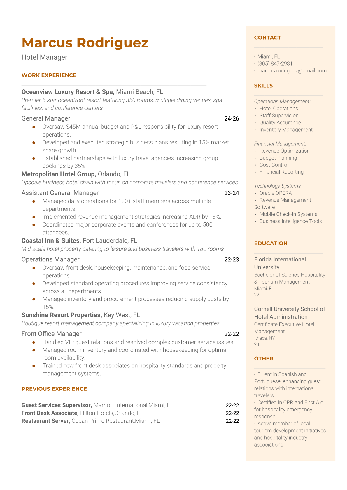 Hotel Manager Resume Templates - ATS-Optimized for Hospitality