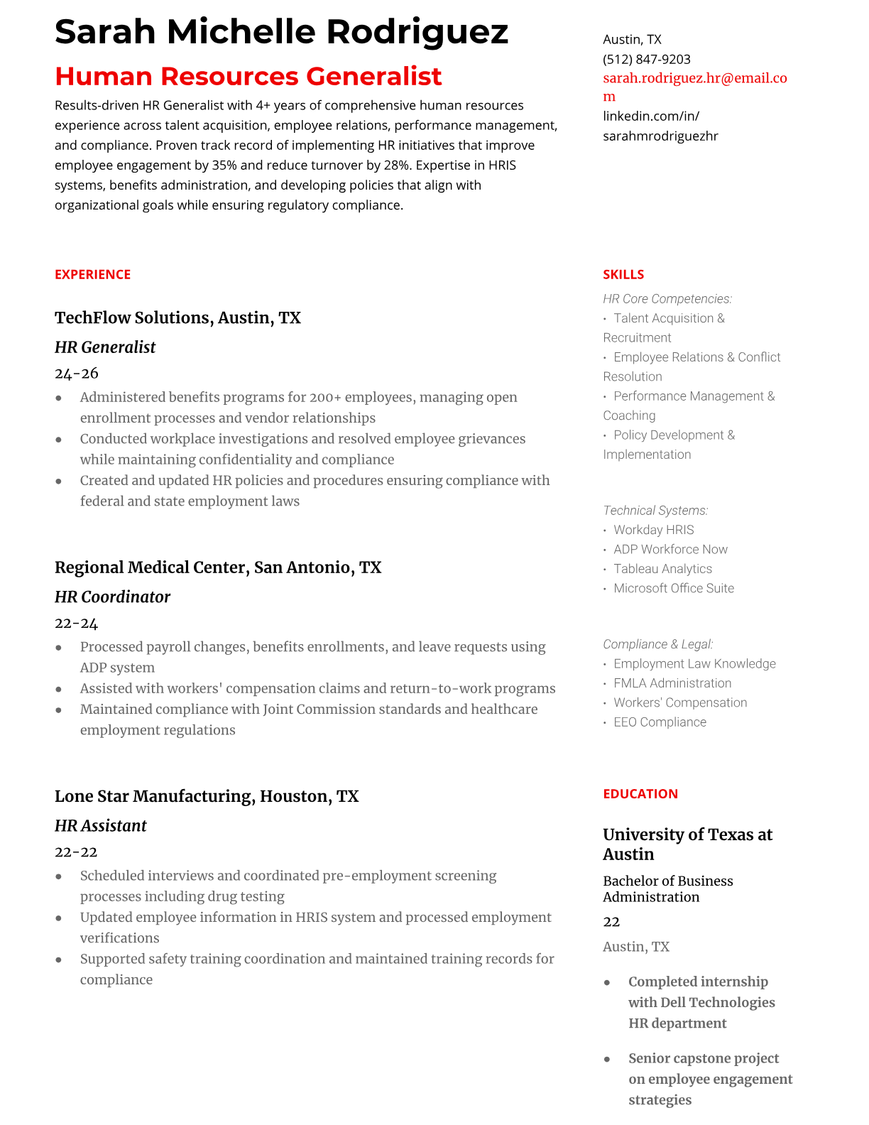 HR Generalist Resume Templates - ATS-Optimized for Human Resources