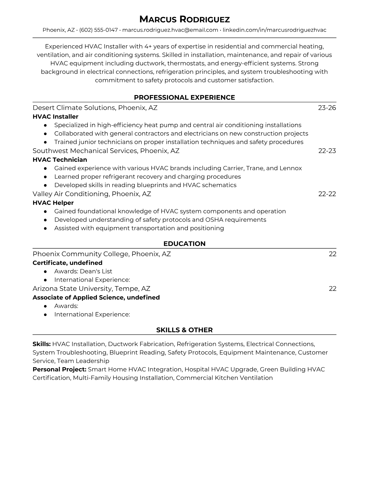 HVAC Installer Resume Templates - ATS-Optimized for Construction Jobs