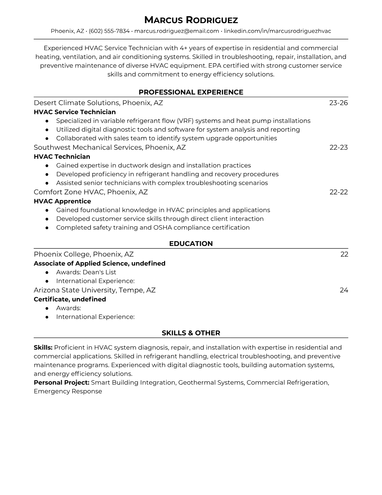 HVAC Service Technician Resume Templates - Technical & ATS-Optimized