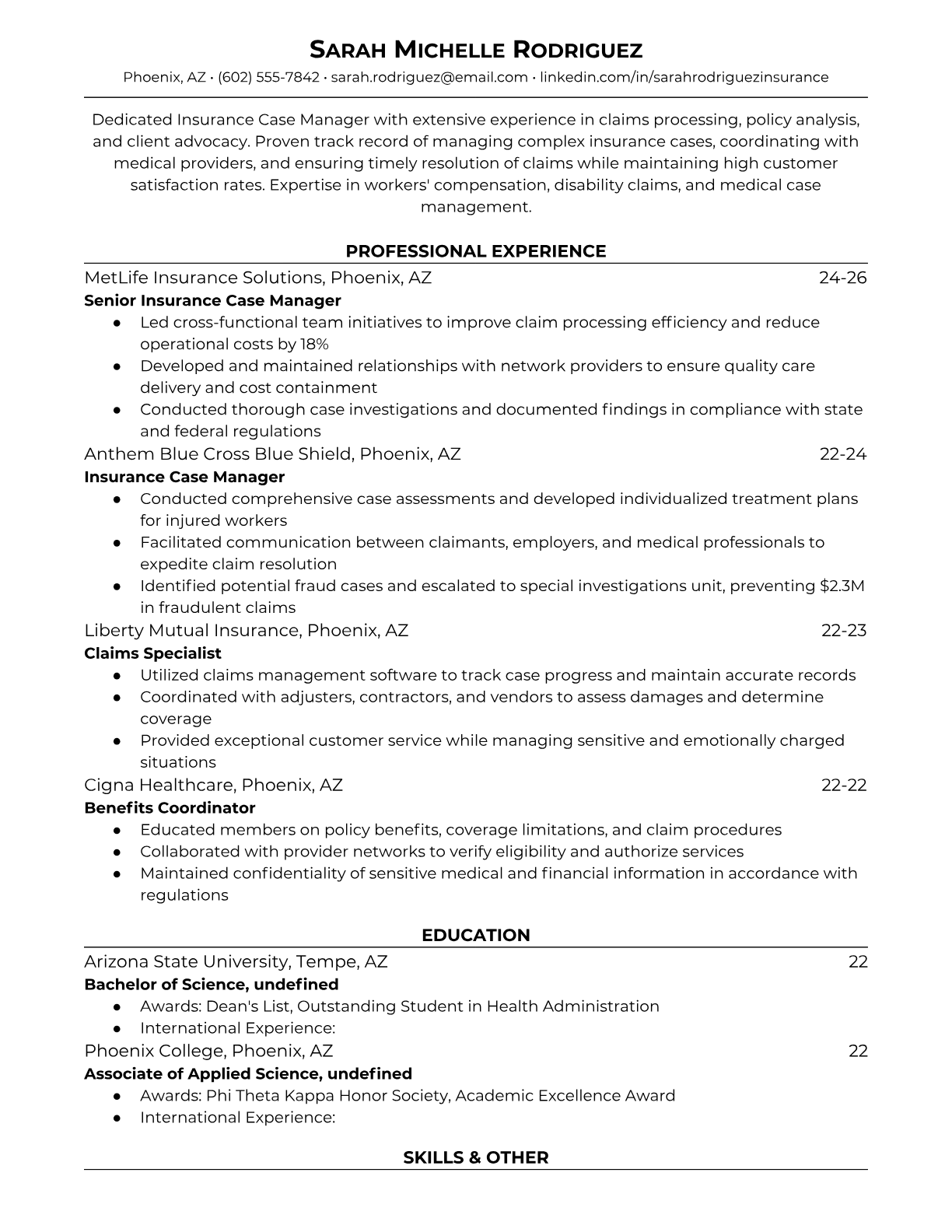 Insurance Case Manager Resume Templates - ATS-Optimized