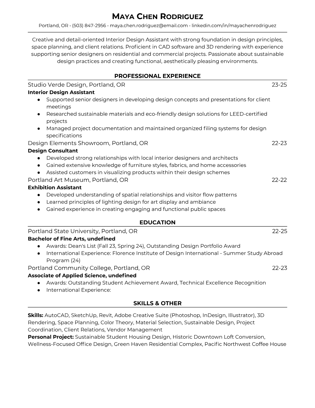 Interior Design Assistant Resume Templates - ATS-Optimized for Design Firms