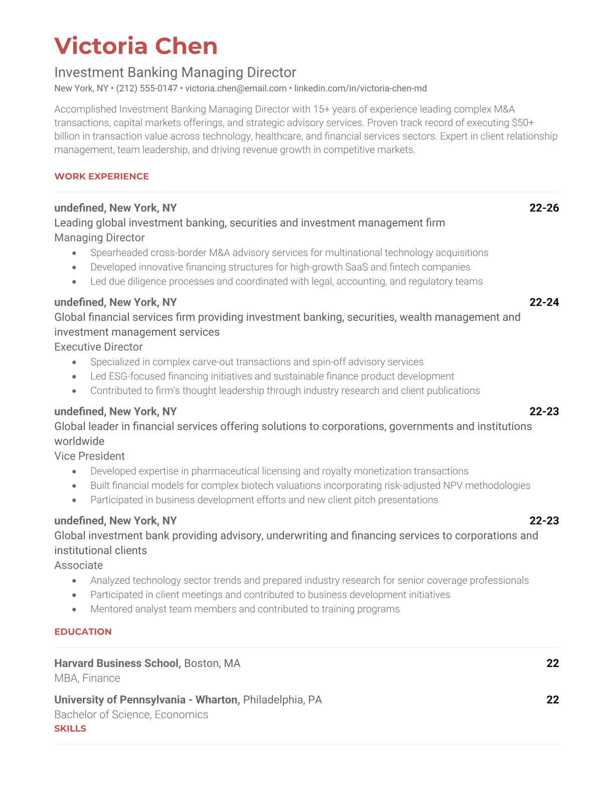 Investment Banking Managing Director Resume Templates - ATS Optimized