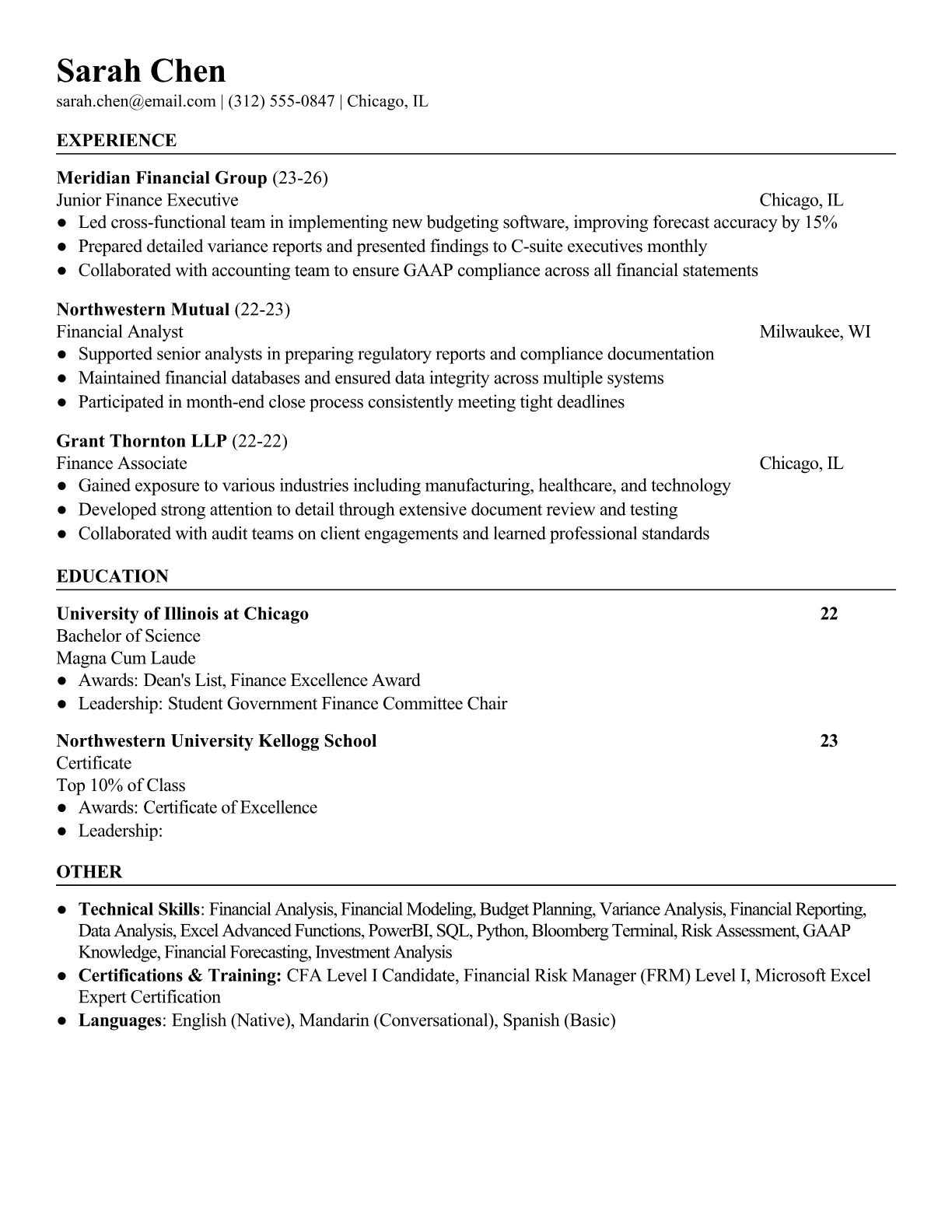 Junior Finance Executive Resume Templates - Corporate & Quantitative Formats