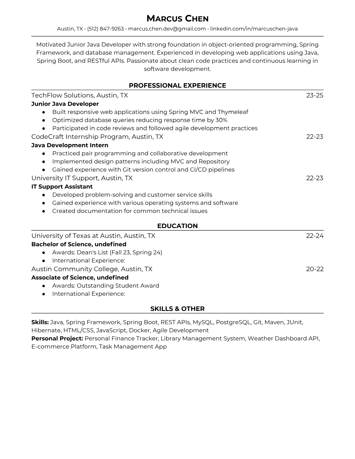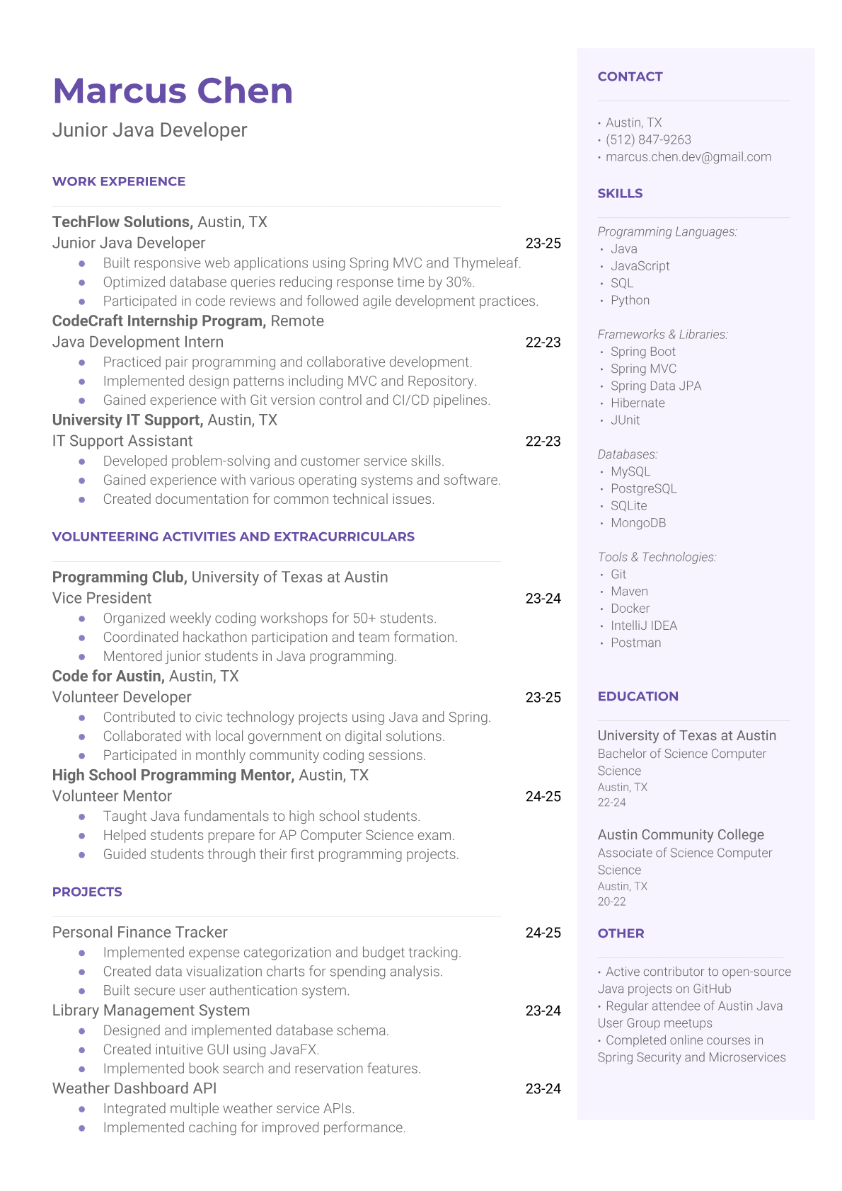 Junior Java Developer Resume Templates - ATS-Optimized for Tech Jobs