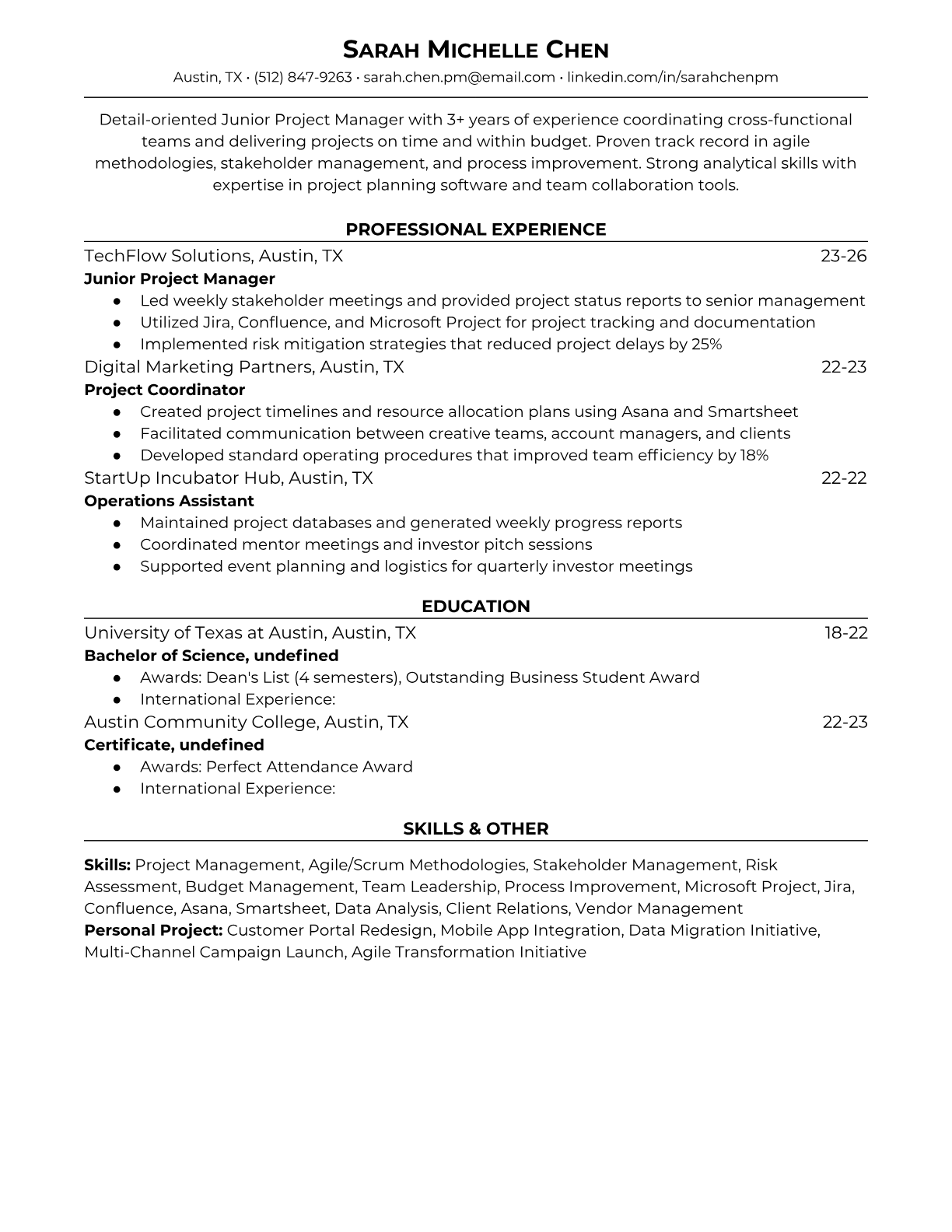 Junior Project Manager Resume Templates - ATS-Optimized