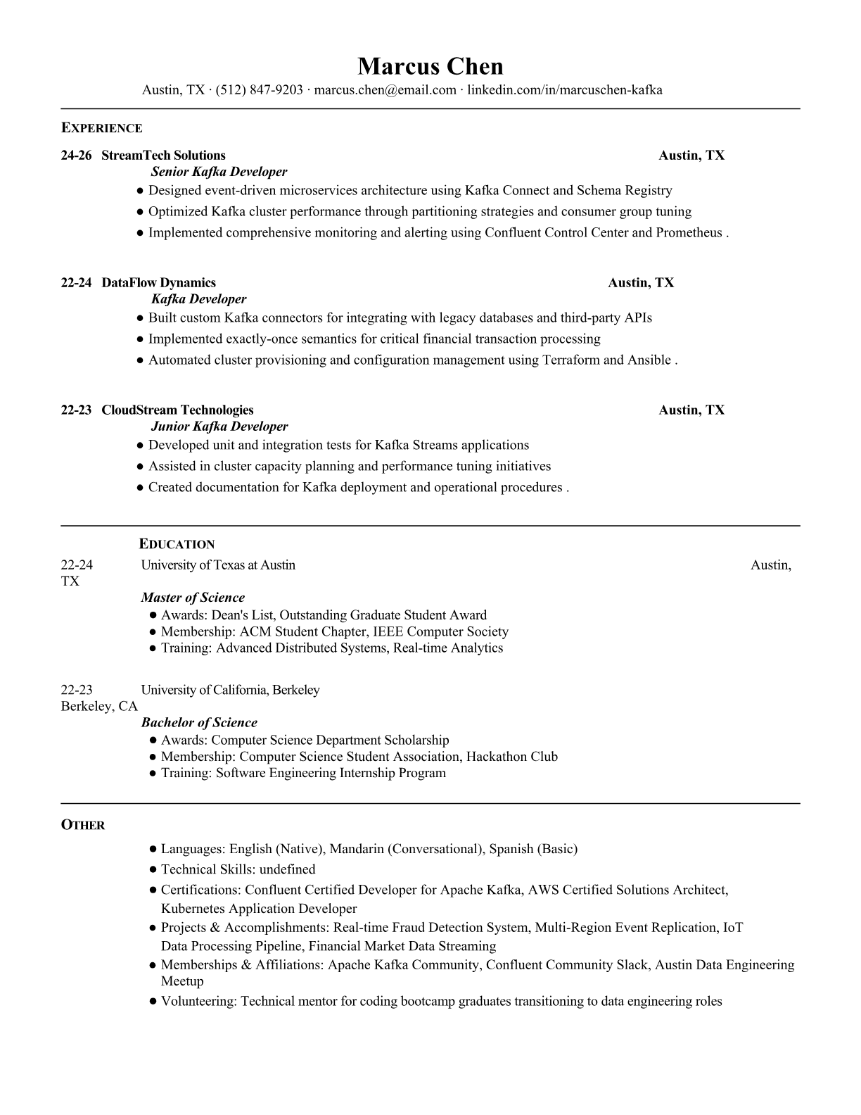 Kafka Developer Resume Templates - ATS-Optimized for Streaming Data Roles