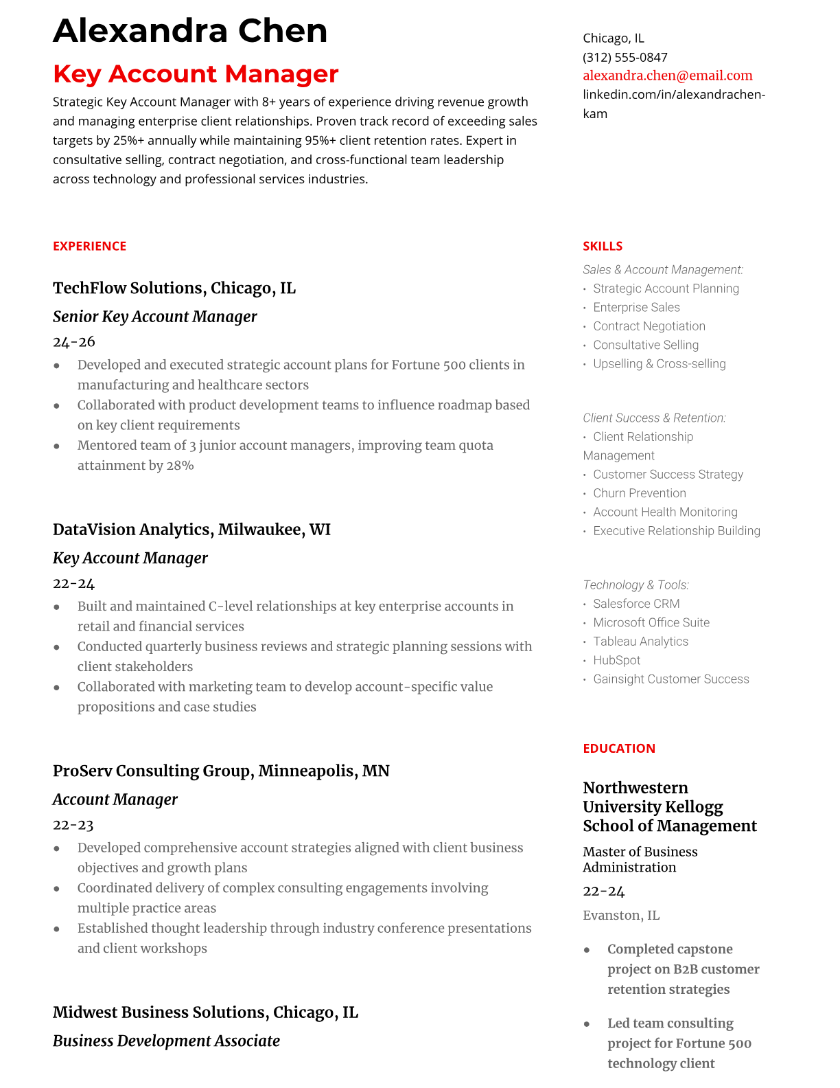 Professional Key Account Manager resume templates optimized for ATS systems. Highlight client relationship management, revenue growth, and account retention skills with our proven formats.