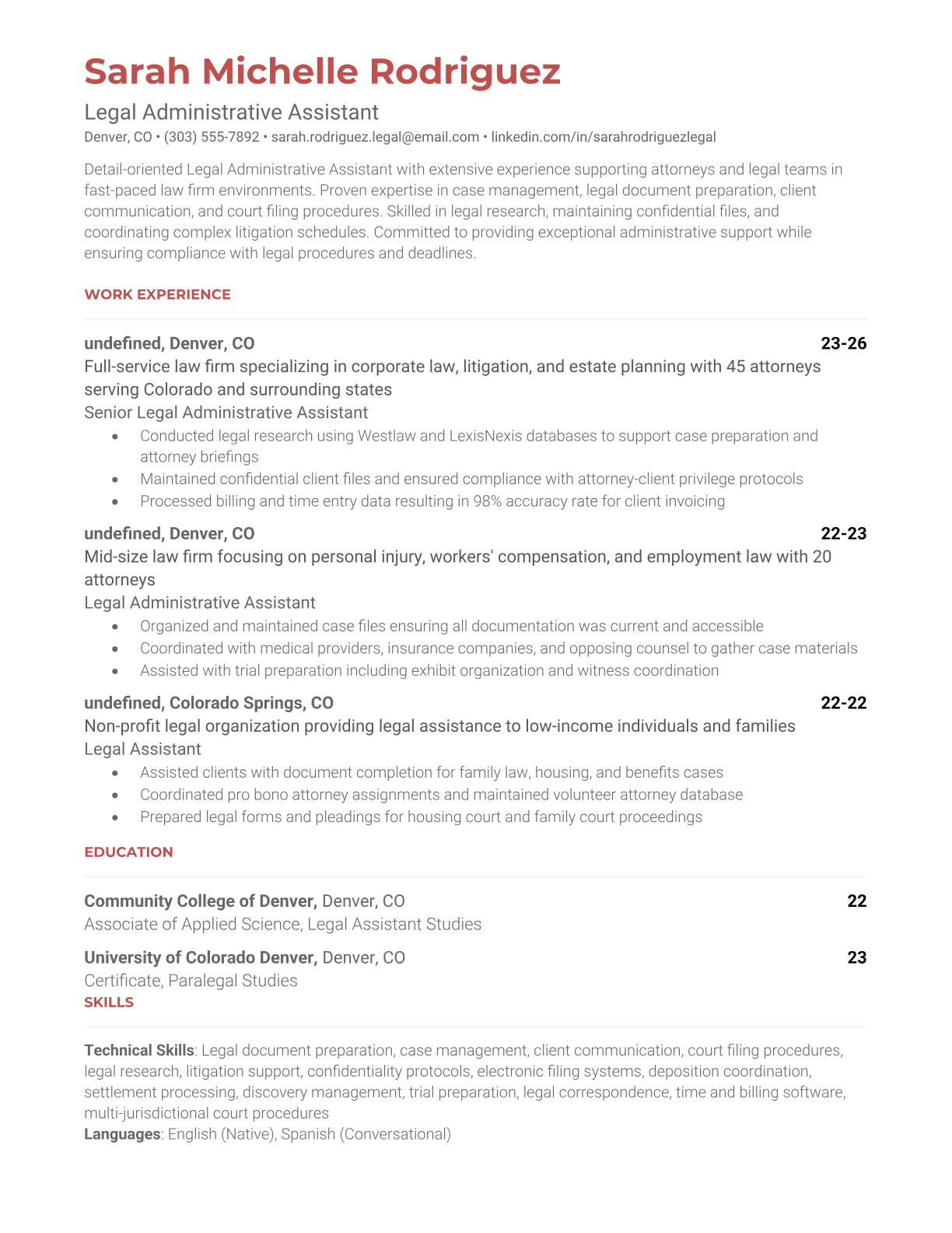 Legal Administrative Assistant Resume Templates - ATS Optimized