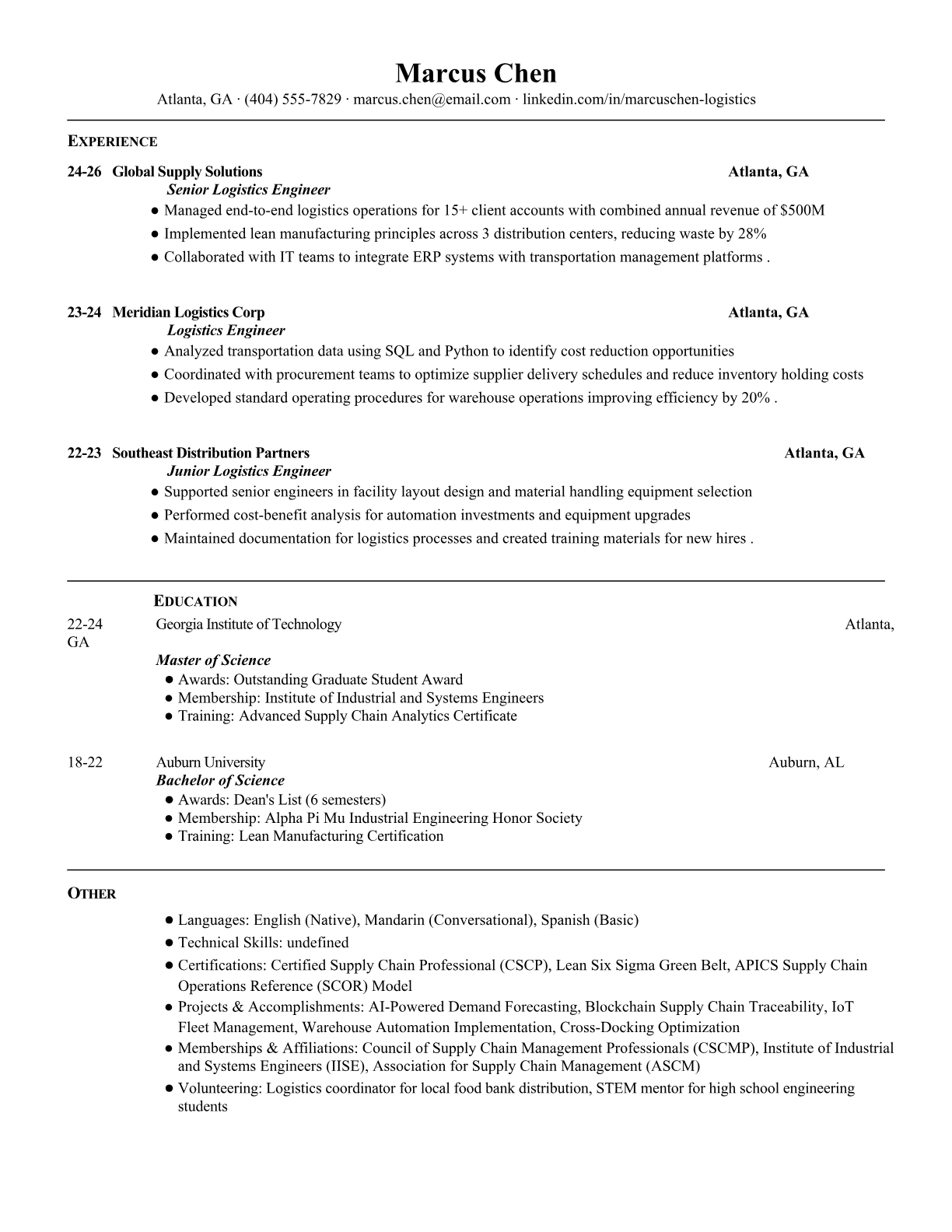 Logistics Engineer Resume Templates - ATS-Optimized for Supply Chain Roles