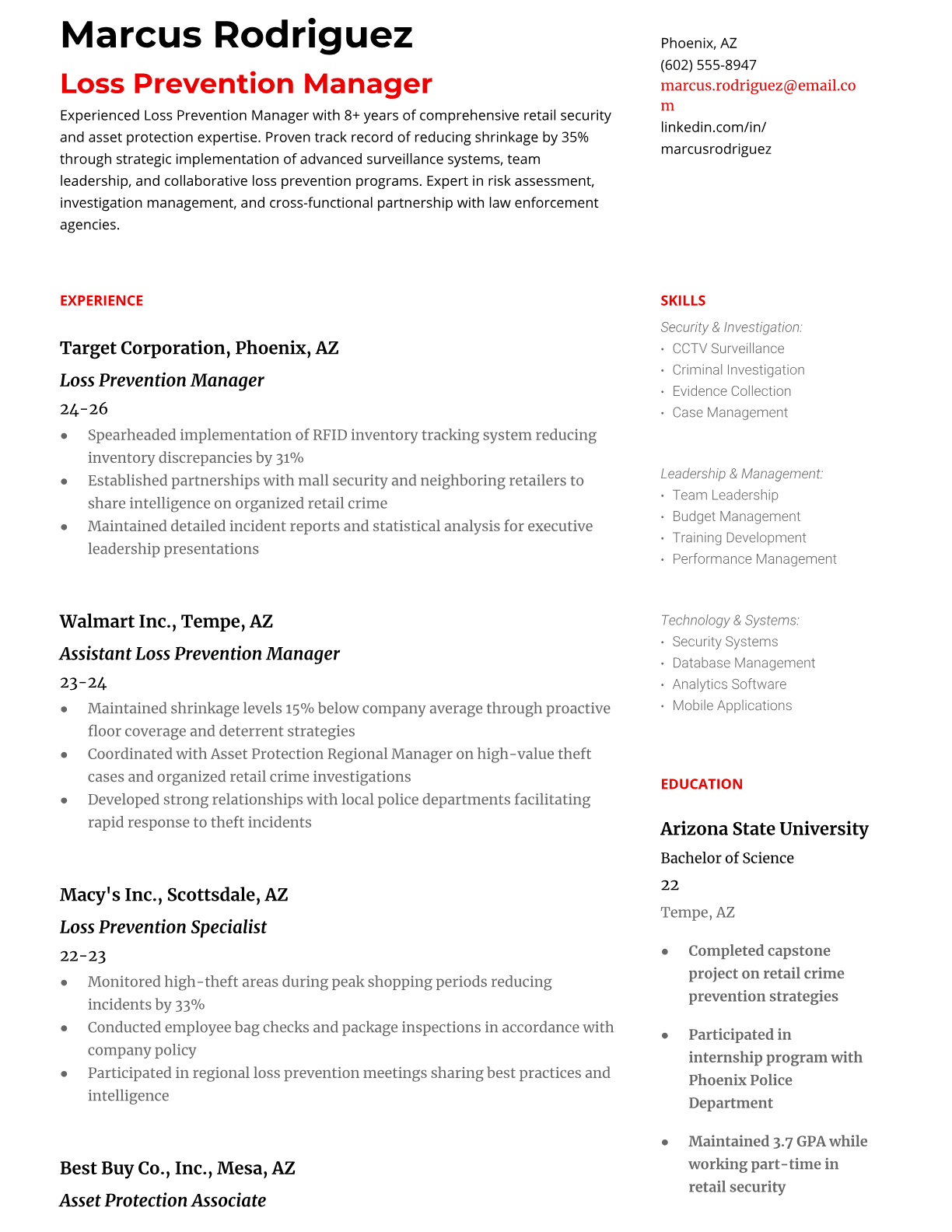 Loss Prevention Manager Resume Templates - ATS-Optimized