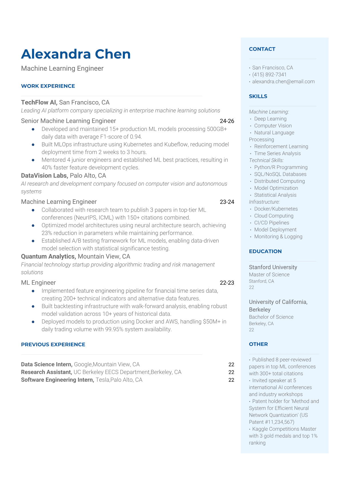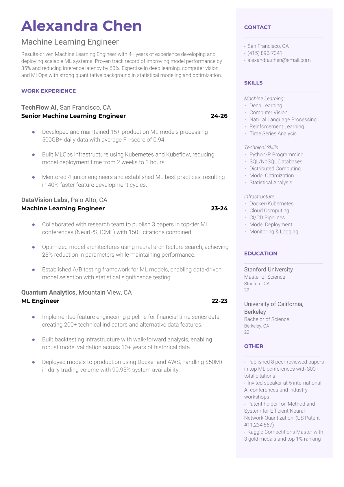 Machine Learning Engineer Resume Templates - ATS-Optimized ML Resumes