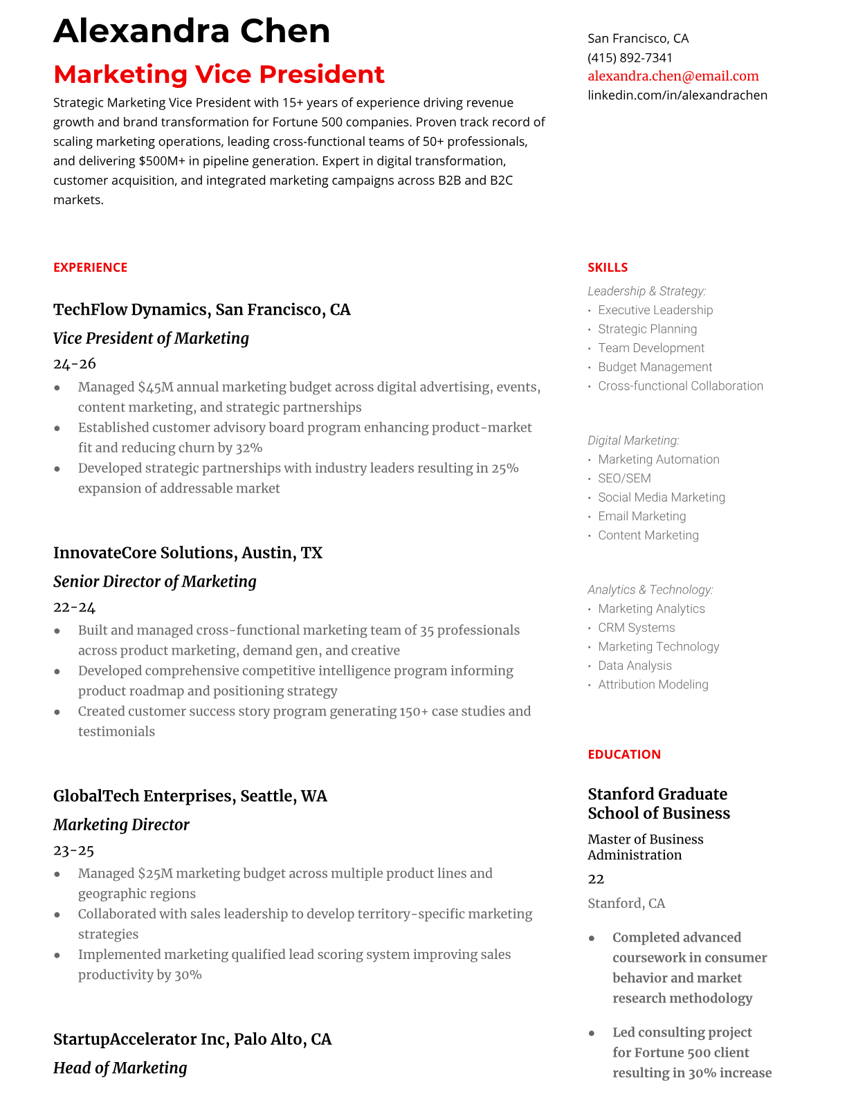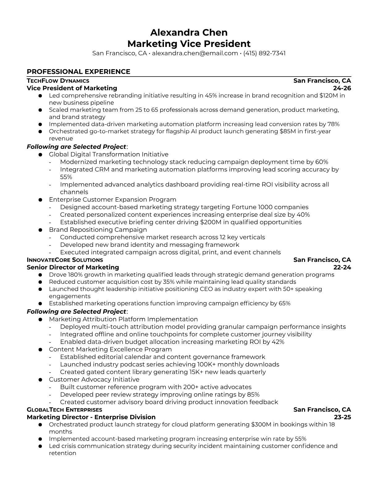 Marketing Vice President Resume Templates - Executive & Leadership Formats