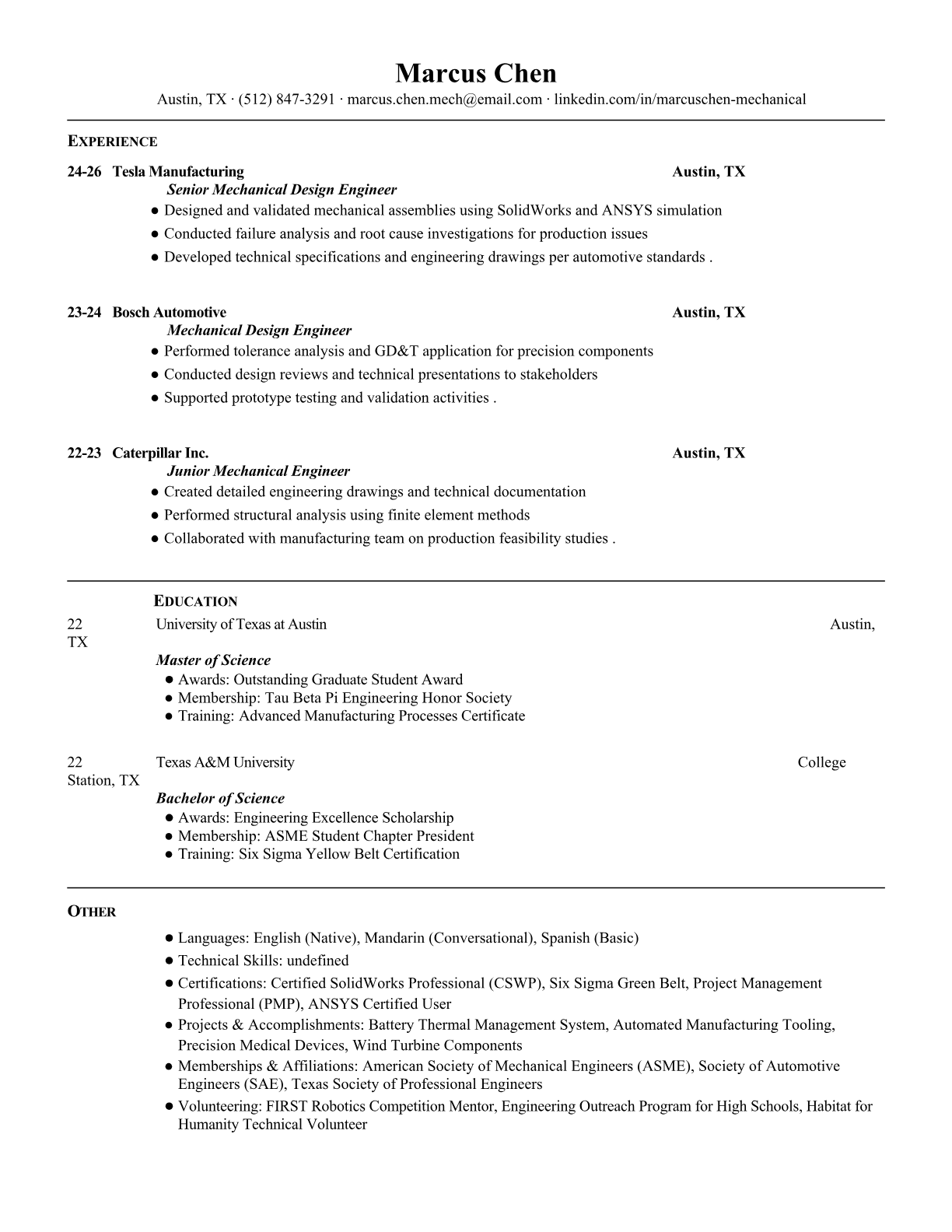 Mechanical Design Engineer Resume Templates - ATS-Optimized