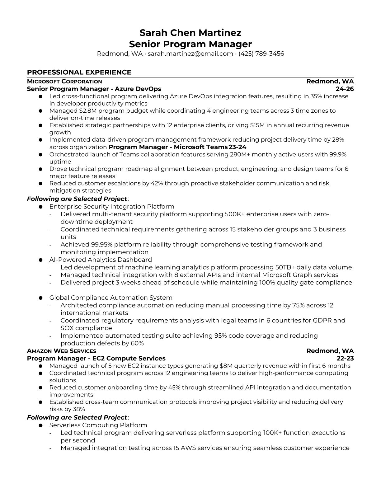 Microsoft Program Manager Resume Templates - ATS-Optimized