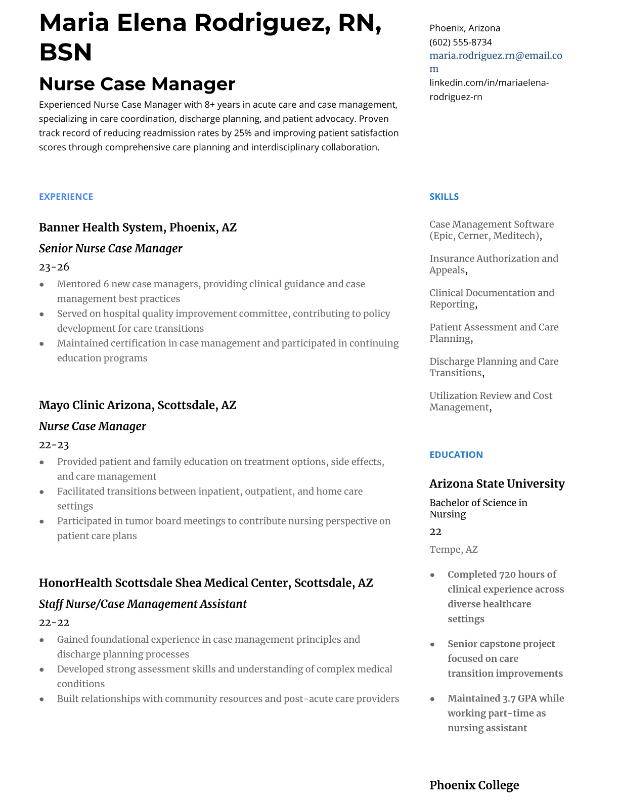 Professional Nurse Case Manager resume templates optimized for healthcare ATS systems. Includes case management keywords, nursing credentials, and care coordination experience formatting.