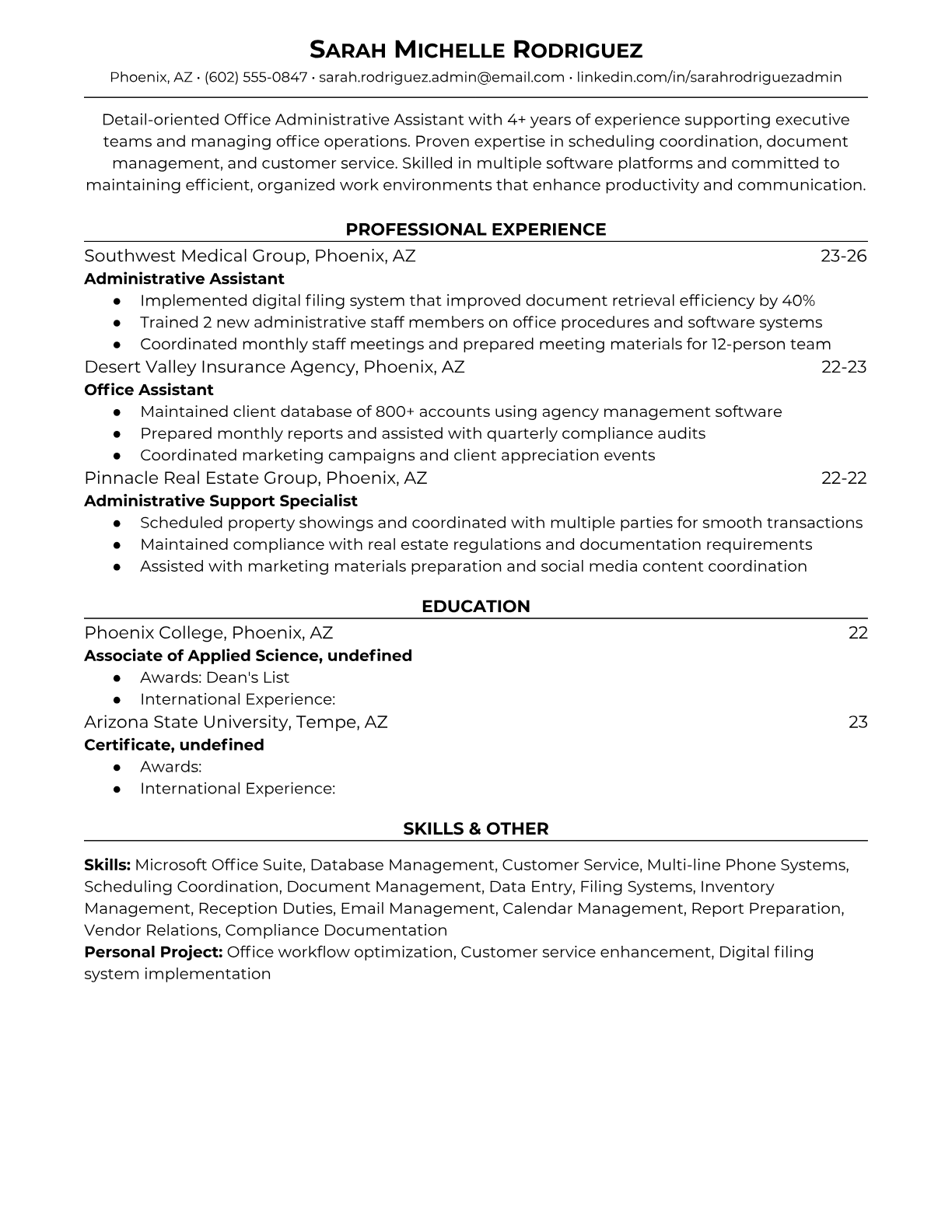 Office Administrative Assistant Resume Templates - ATS-Optimized