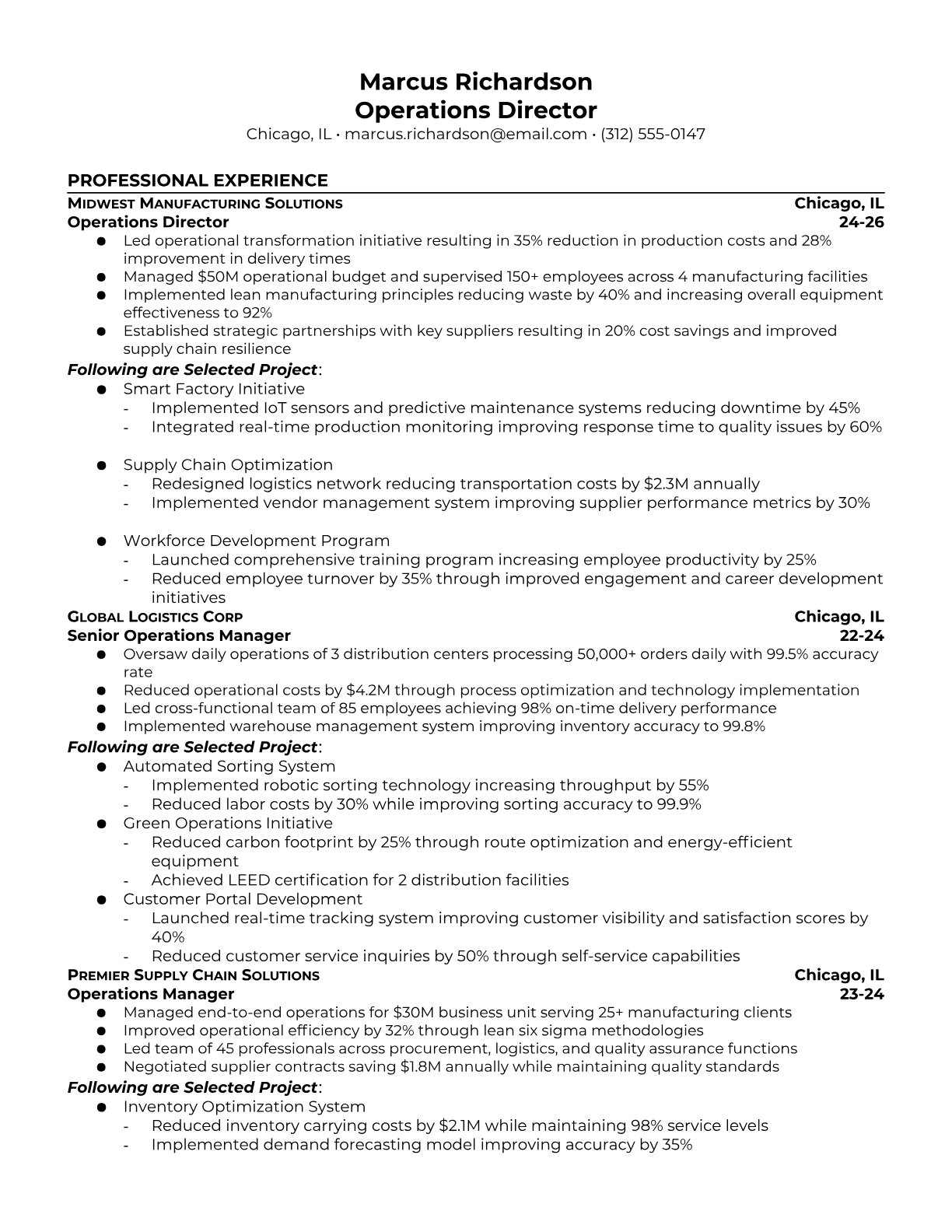 Operations Director Resume Templates - Executive & Leadership Formats