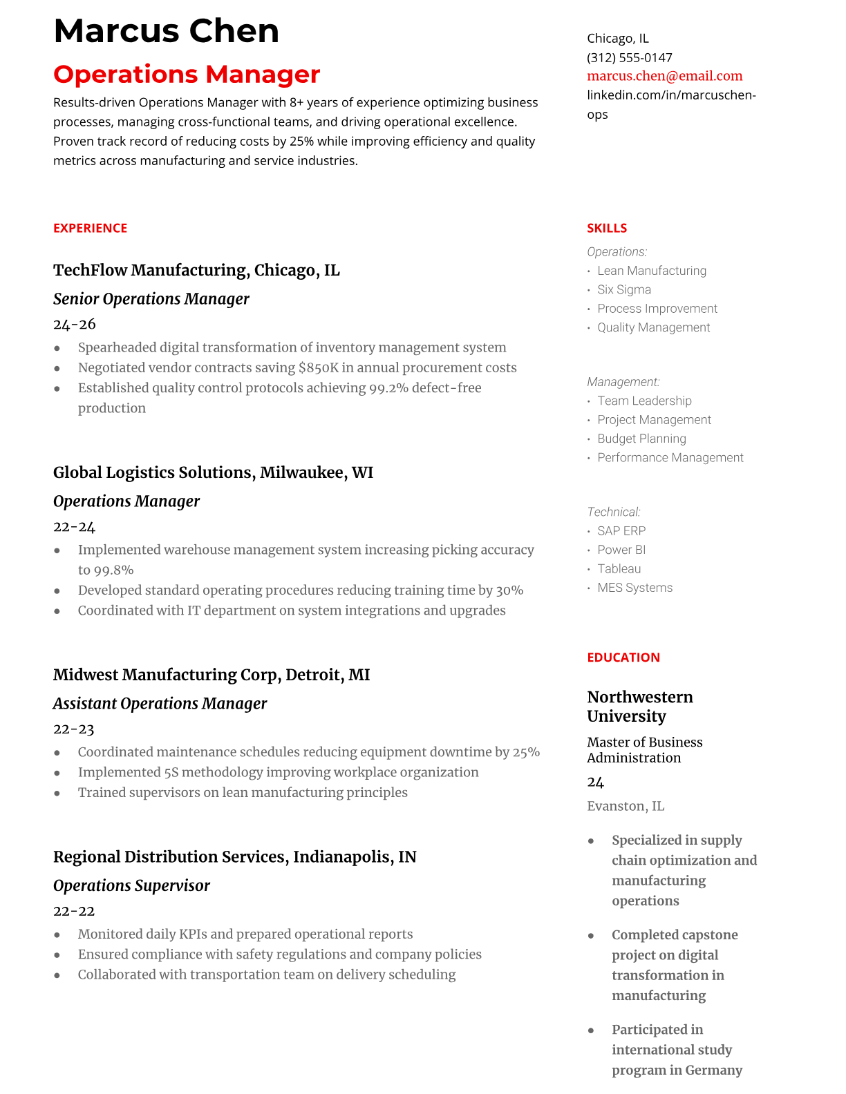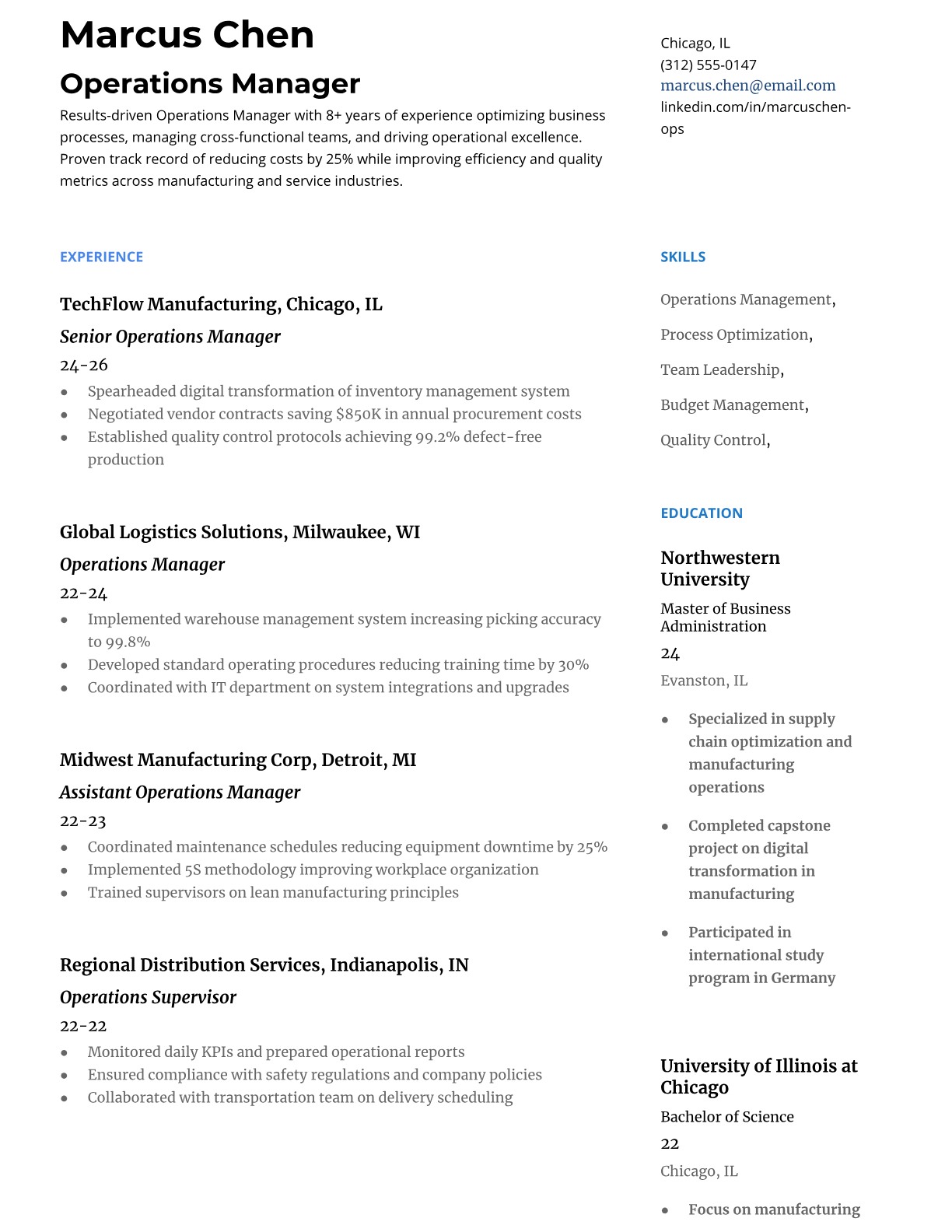 Operations Manager Resume Templates - ATS-Optimized Formats
