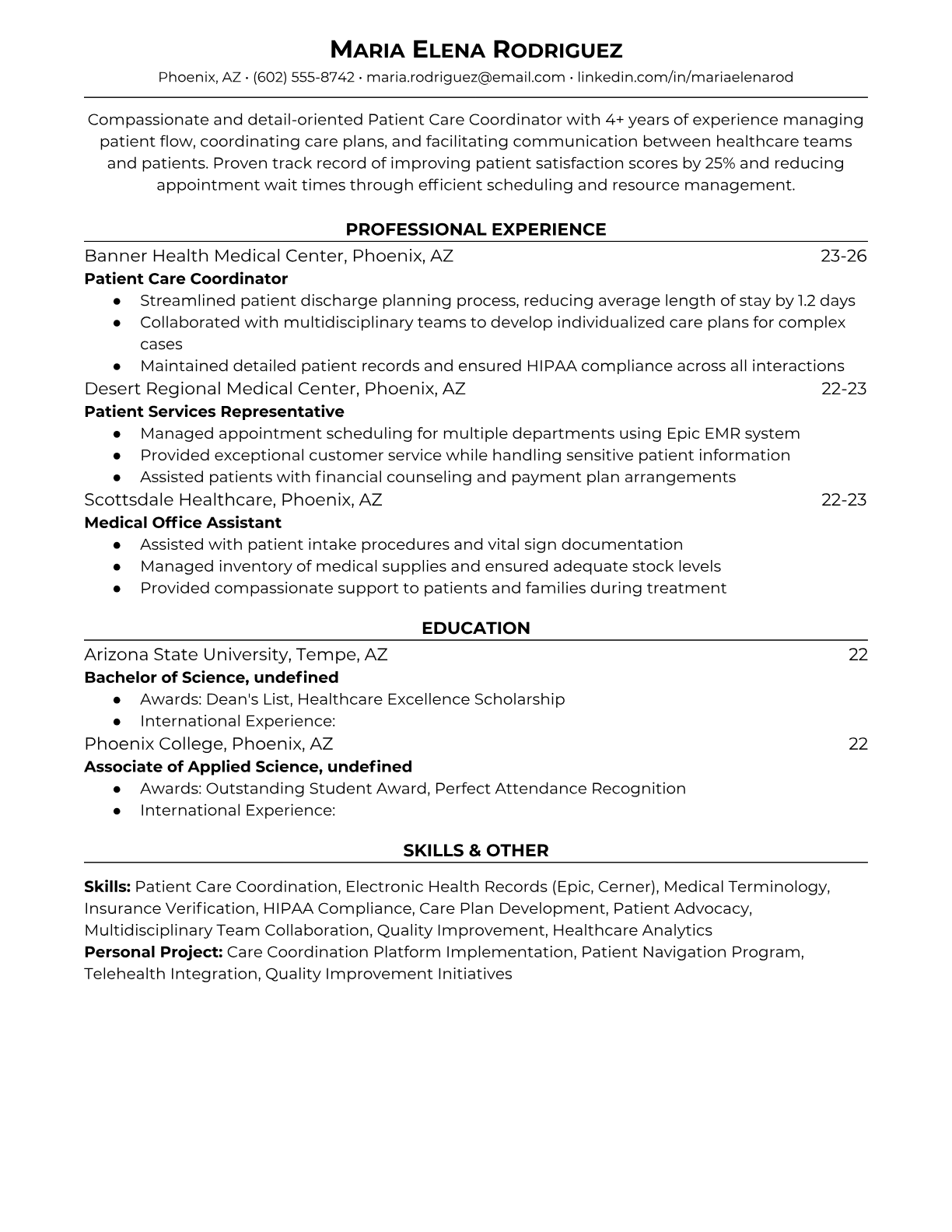 Patient Care Coordinator Resume Templates - Healthcare ATS Optimized