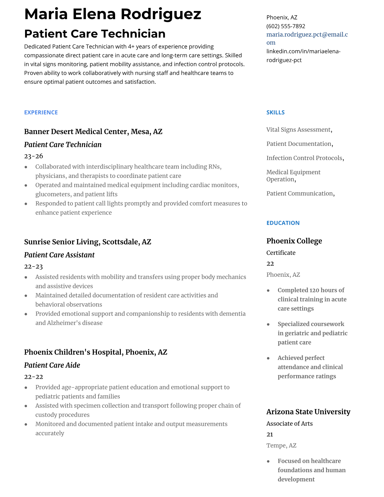 Patient Care Technician Resume Templates - Healthcare ATS Optimized