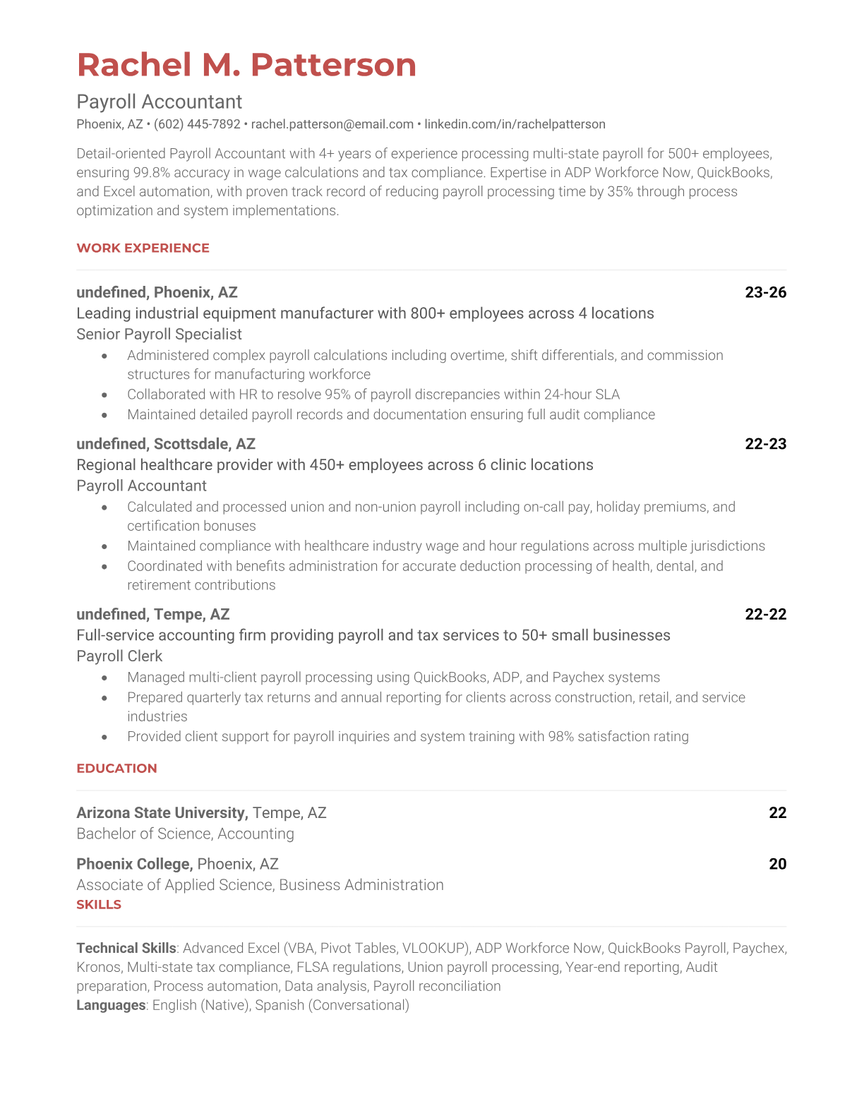 Payroll Accountant Resume Templates - ATS-Optimized for Finance Roles