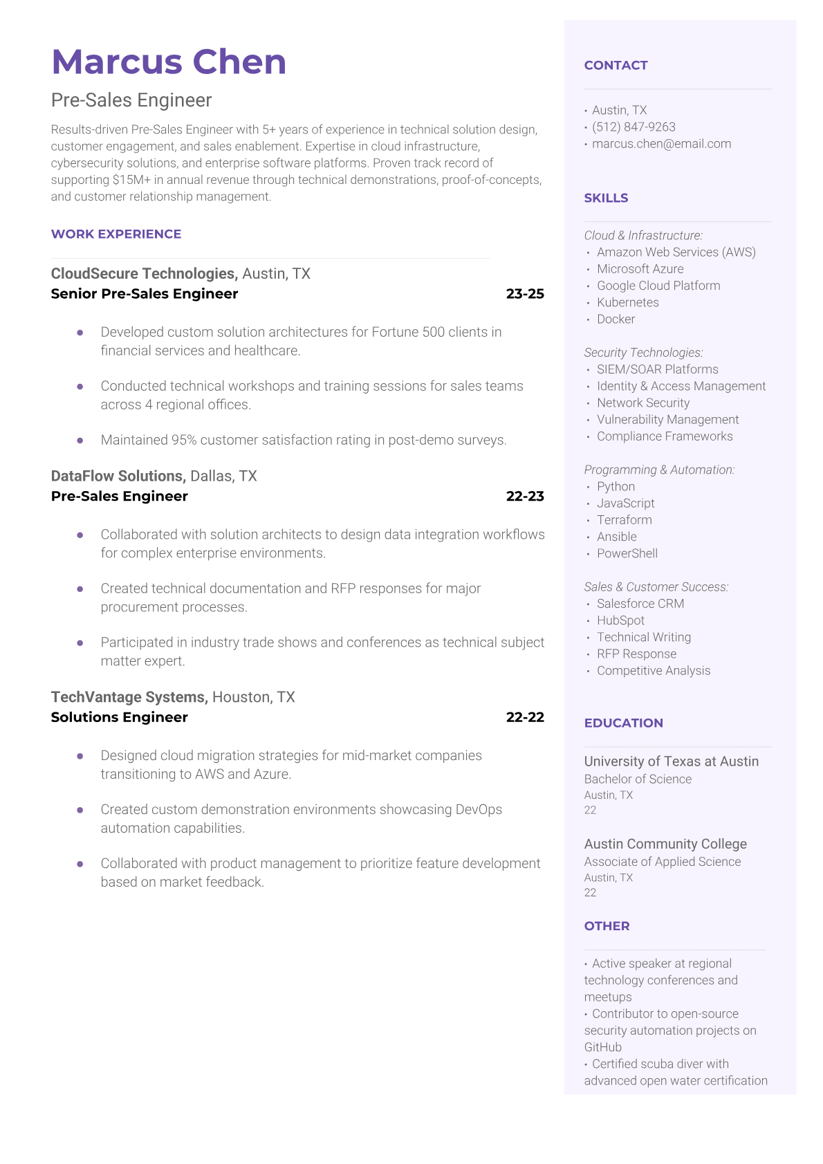 Professional Pre-Sales Engineer resume templates optimized for ATS systems. Highlight technical expertise, customer-facing skills, and sales support experience with our specialized templates.