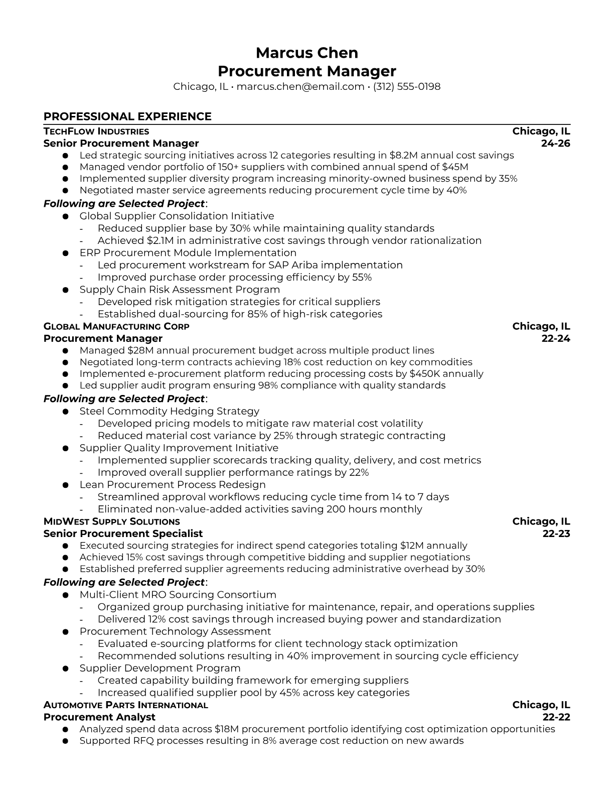 Procurement Manager Resume Templates - ATS-Optimized for Supply Chain Professionals