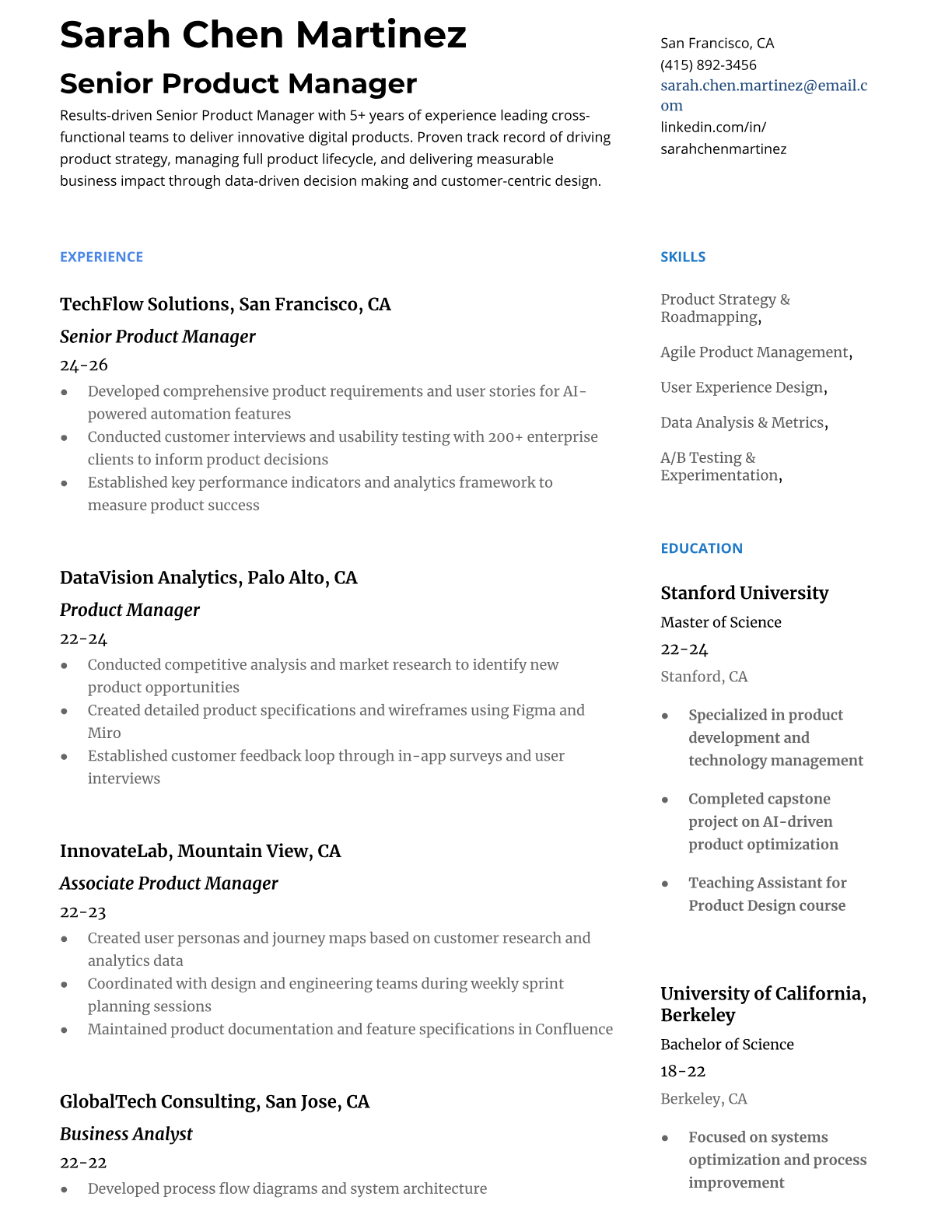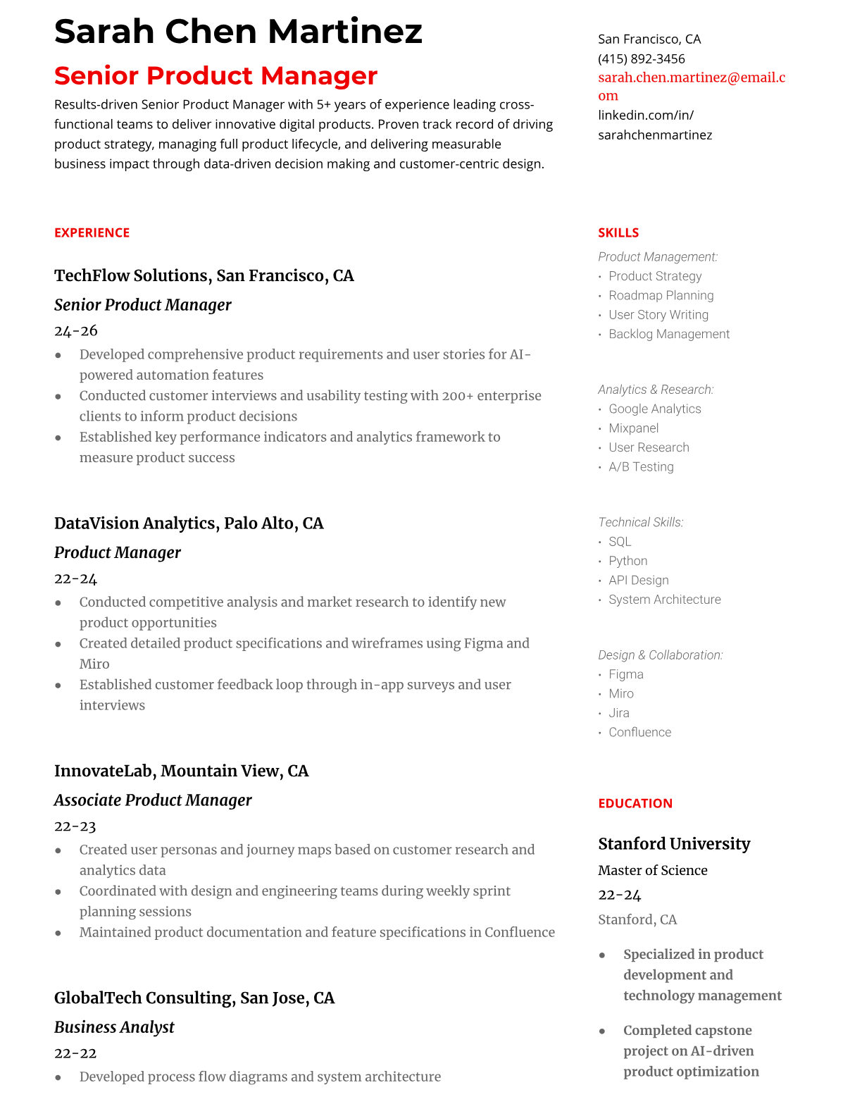 Product Manager Resume Templates - ATS-Optimized for Tech Companies