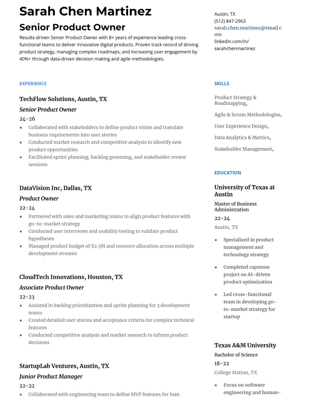Product Owner Resume Templates - ATS-Optimized for Agile Roles