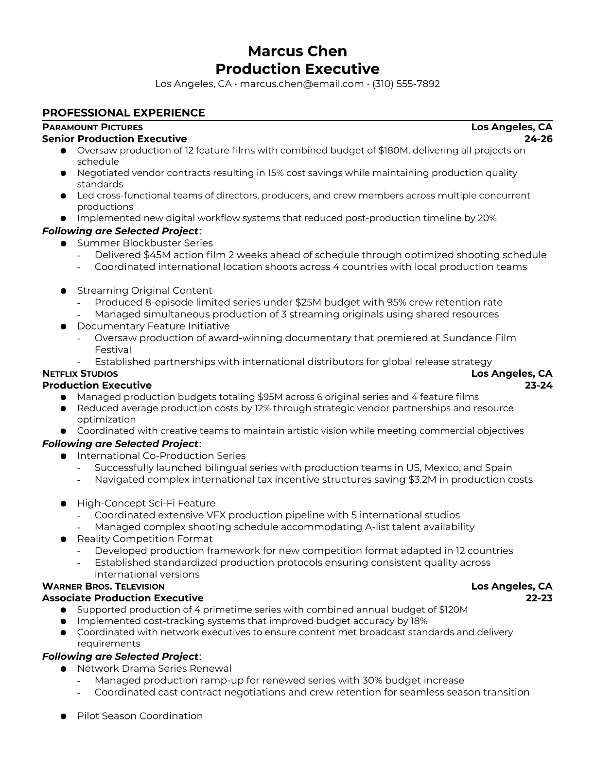 Professional Production Executive resume templates optimized for manufacturing ATS systems. Highlight your production management experience, lean manufacturing expertise, and operational leadership with templates designed for executive-level manufacturing roles.