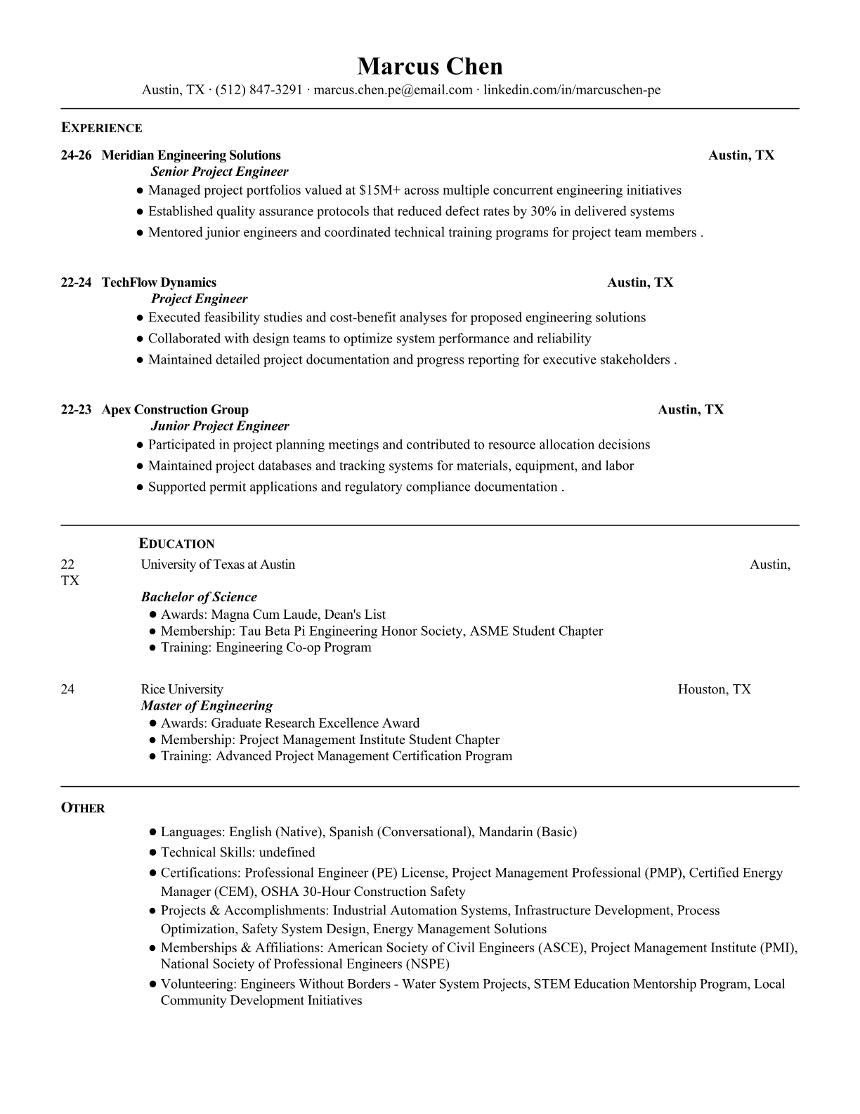 Project Engineer Resume Templates - ATS-Optimized for Engineering Roles