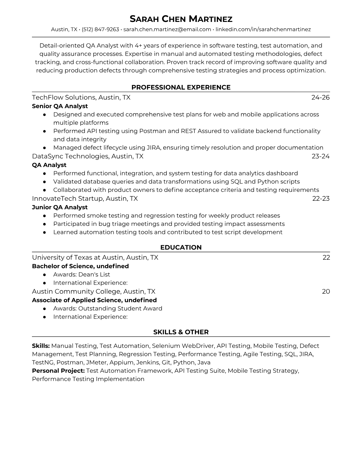 QA Analyst Resume Templates - ATS-Optimized for Quality Assurance Jobs