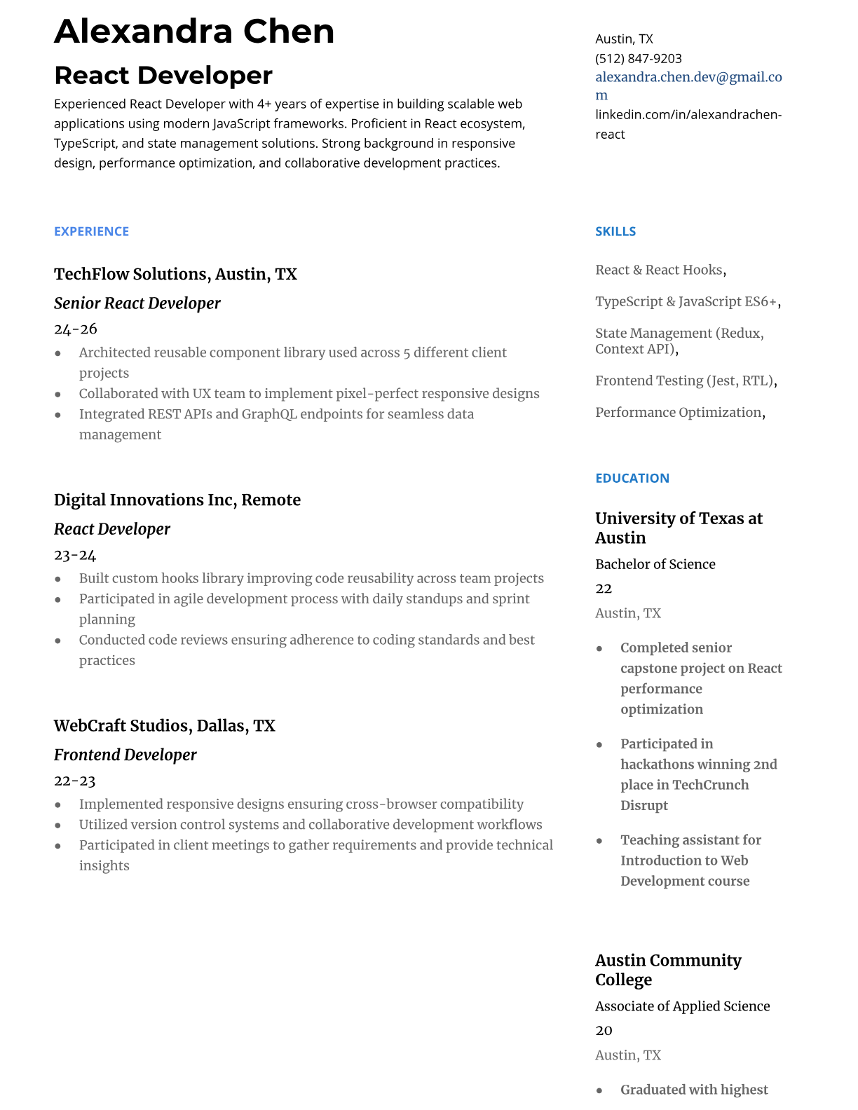 React Developer Resume Templates - ATS-Optimized for Tech Jobs